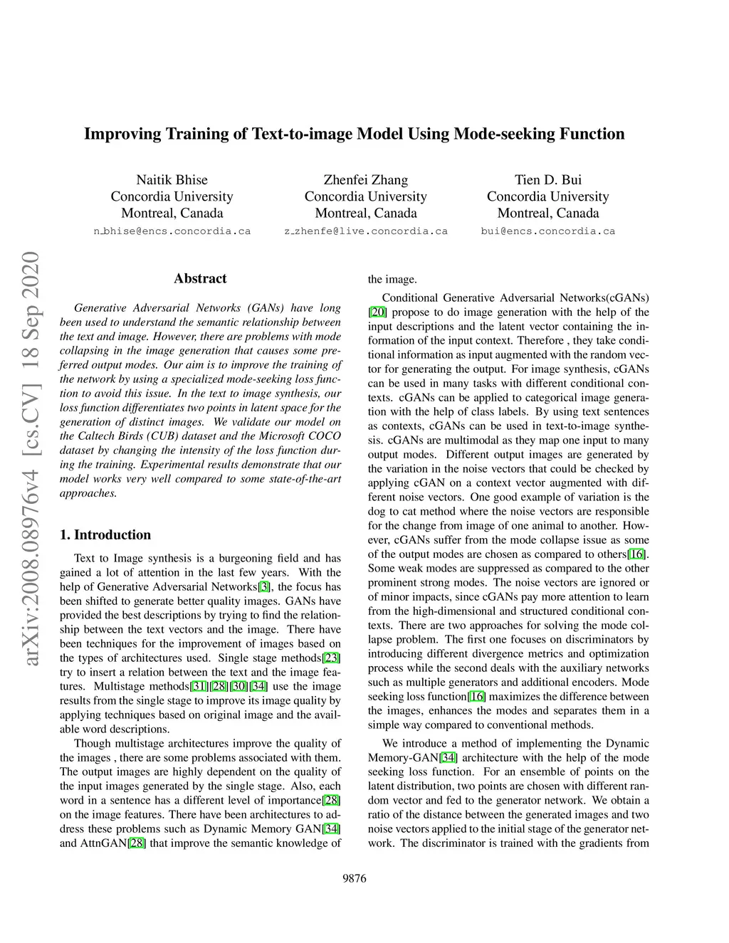 Improving Text to Image Generation using Mode-seeking Function