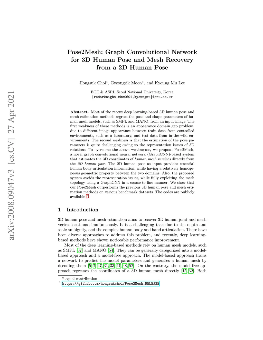 Pose2Mesh: Graph Convolutional Network for 3D Human Pose and Mesh