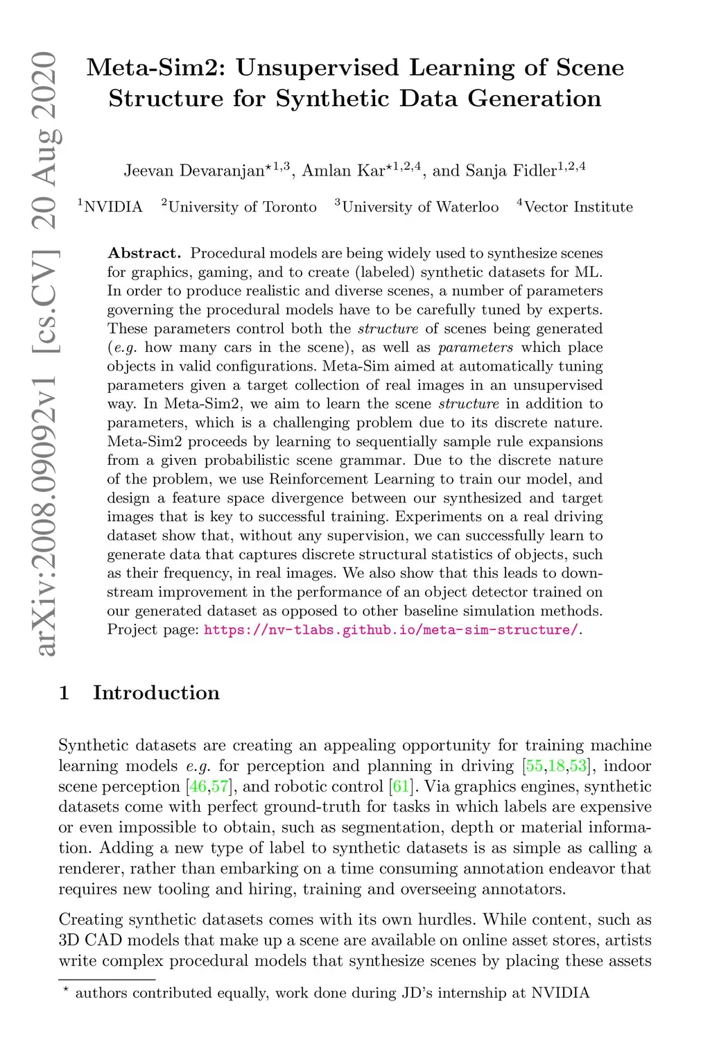 Meta-Sim2: Unsupervised Learning of Scene Structure for Synthetic Data