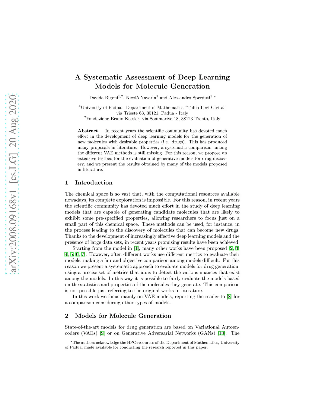 In recent years the scientific community has devoted much effort in the development of deep learning models for the generation of new molecules with desirable properties (i.e. drugs). This has produced many proposals in literature. However, a systematic comparison among the different VAE methods is still missing. For this reason, we propose an extensive testbed for the evaluation of generative models for drug discovery, and we present the results obtained by many of the models proposed in literature.