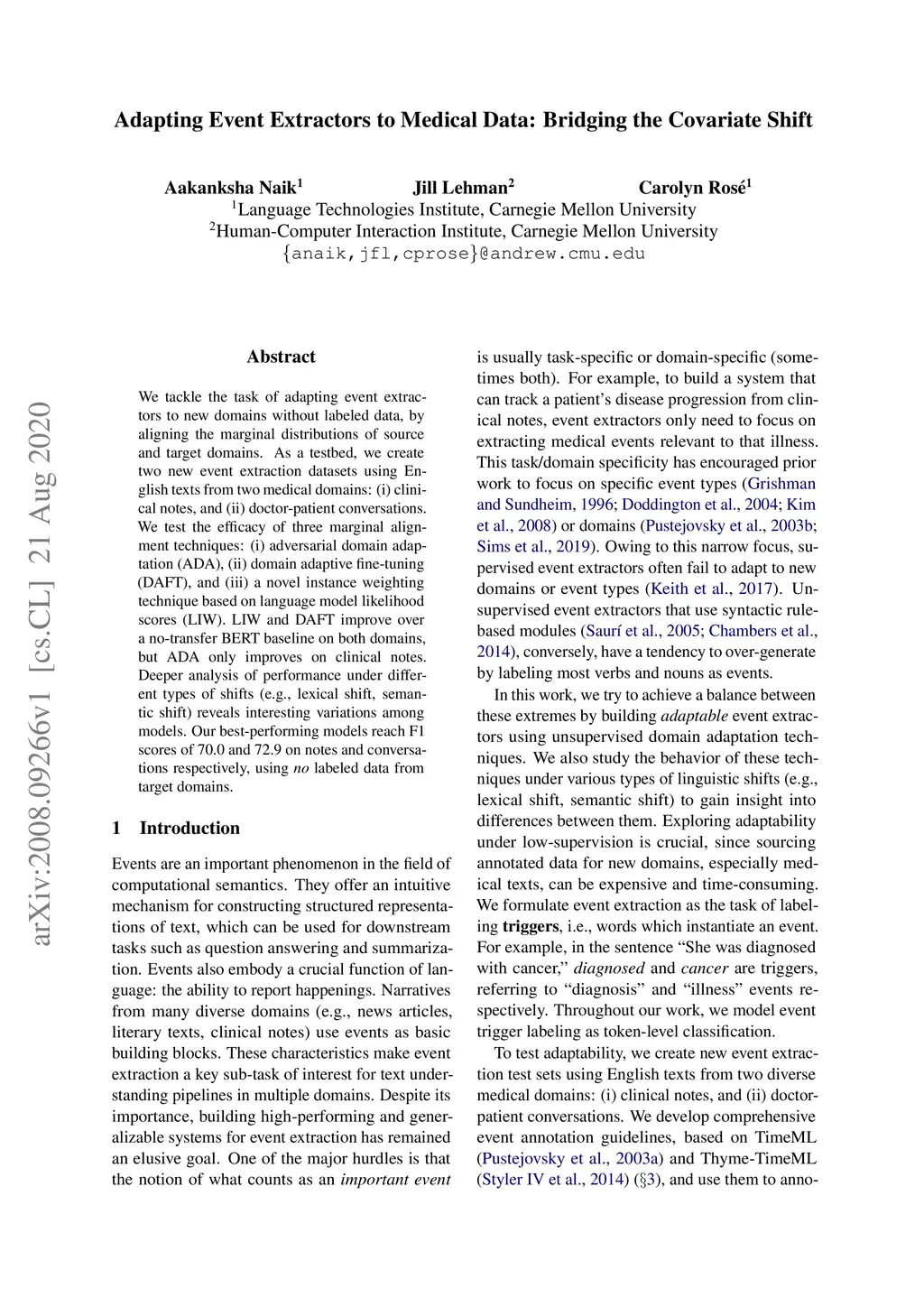 Adapting Event Extractors to Medical Data: Bridging the Covariate Shift