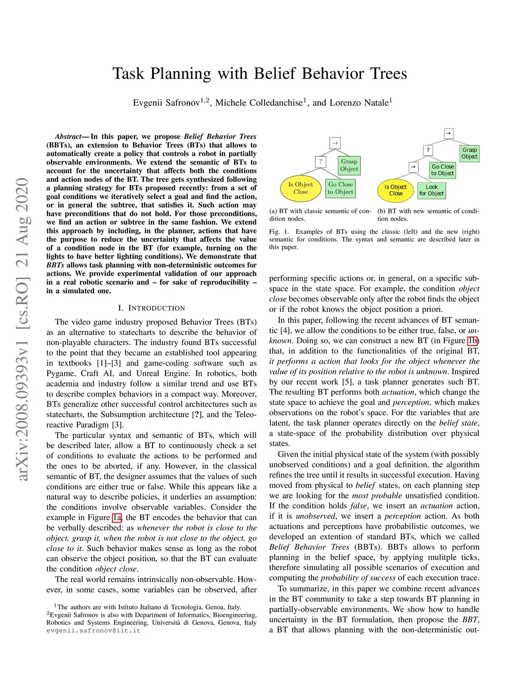 Task Planning with Belief Behavior Trees