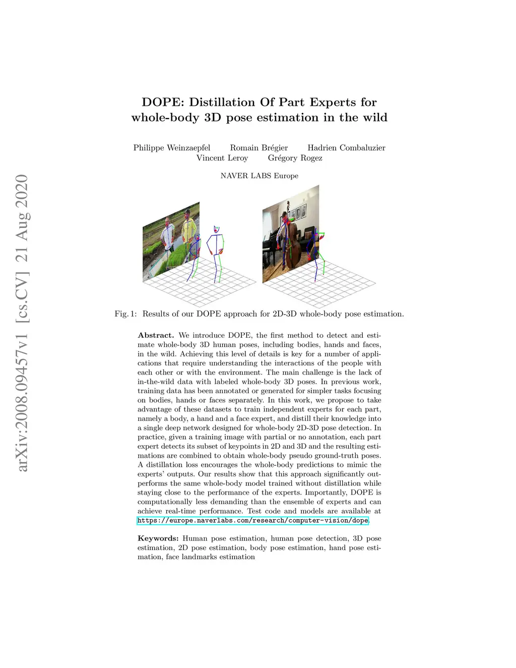 DOPE: Distillation Of Part Experts for whole-body 3D pose estimation in