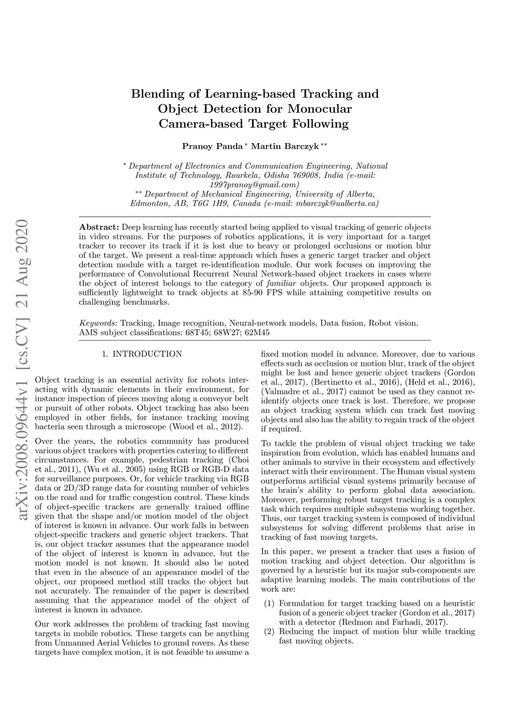 Deep learning has recently started being applied to visual tracking of generic objects in video streams. For the purposes of robotics applications, it is very important for a target tracker to recover its track if it is lost due to heavy or prolonged occlusions or motion blur of the target. We present a real-time approach which fuses a generic target tracker and object detection module with a target re-identification module. Our work focuses on improving the performance of Convolutional Recurrent Neural Network-based object trackers in cases where the object of interest belongs to the category of \emph{familiar} objects. Our proposed approach is sufficiently lightweight to track objects at 85-90 FPS while attaining competitive results on challenging benchmarks.