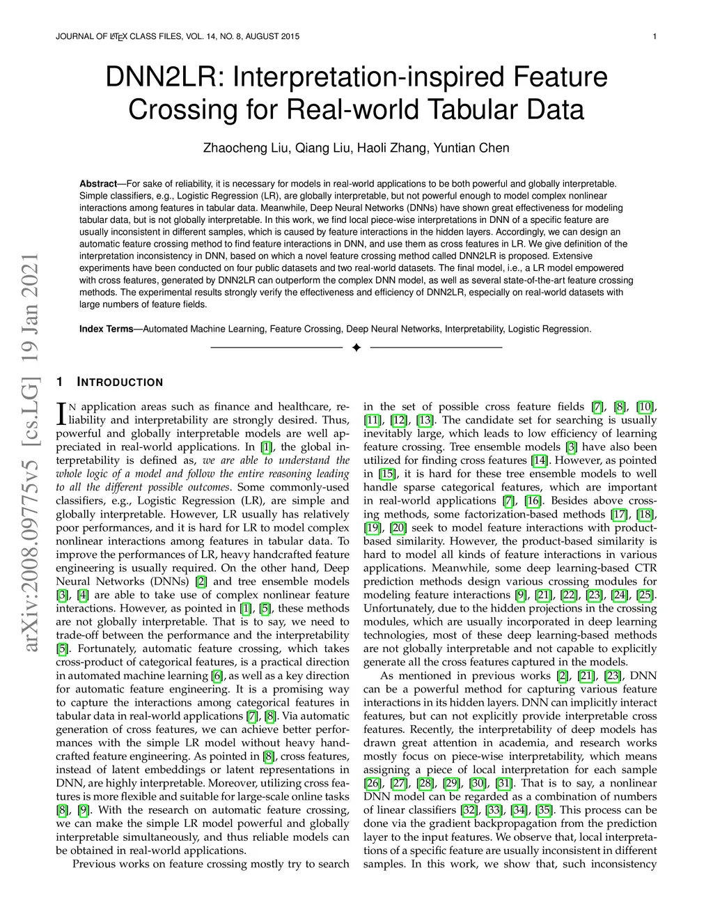 DNN2LR: Interpretation-inspired Feature Crossing for Real-world Tabular