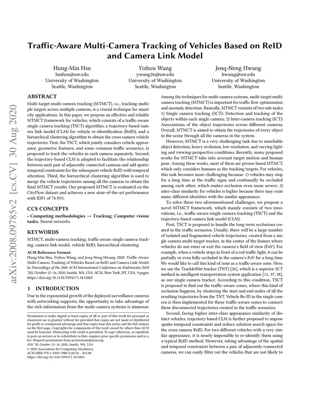Traffic-Aware Multi-Camera Tracking of Vehicles Based on ReID and Camera