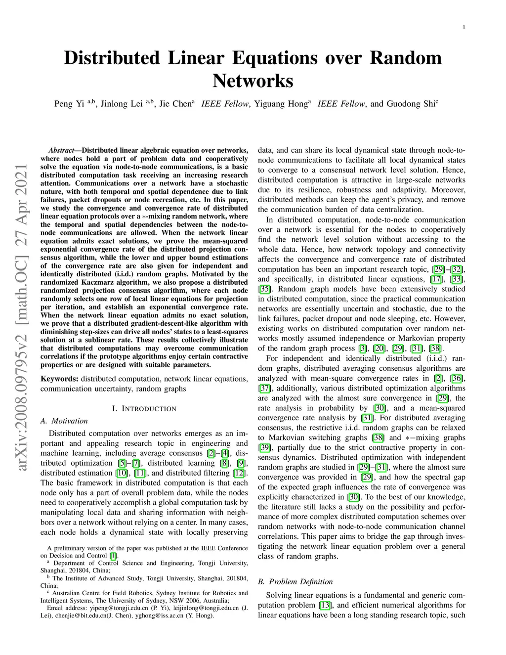 Distributed Linear Equations over Random Networks