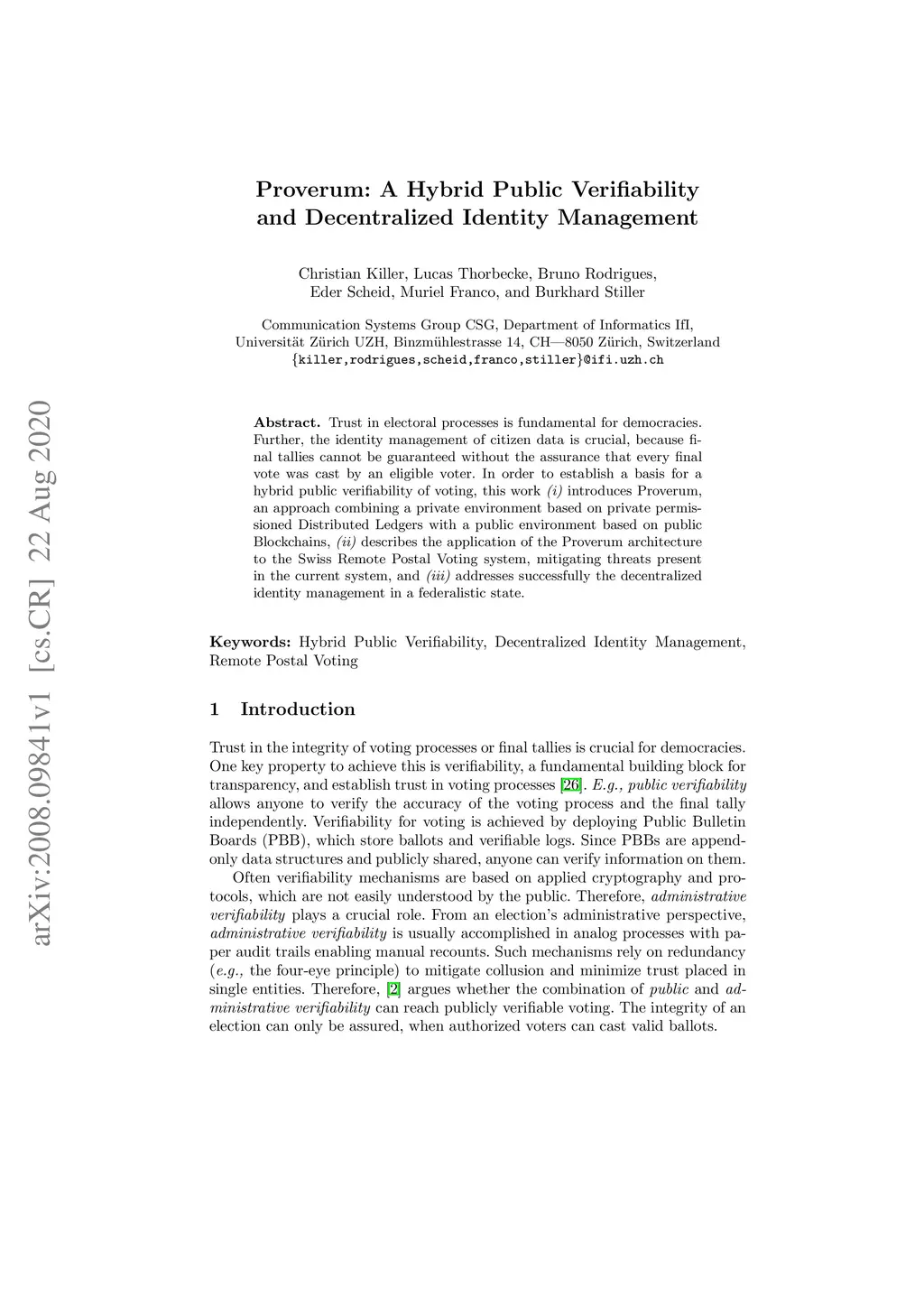 Trust in electoral processes is fundamental for democracies. Further, the identity management of citizen data is crucial, because final tallies cannot be guaranteed without the assurance that every final vote was cast by an eligible voter. In order to establish a basis for a hybrid public verifiability of voting, this work (1) introduces Proverum, an approach combining a private environment based on private permissioned Distributed Ledgers with a public environment based on public Blockchains, (2) describes the application of the Proverum architecture to the Swiss Remote Postal Voting system, mitigating threats present in the current system, and (3) addresses successfully the decentralized identity management in a federalistic state.