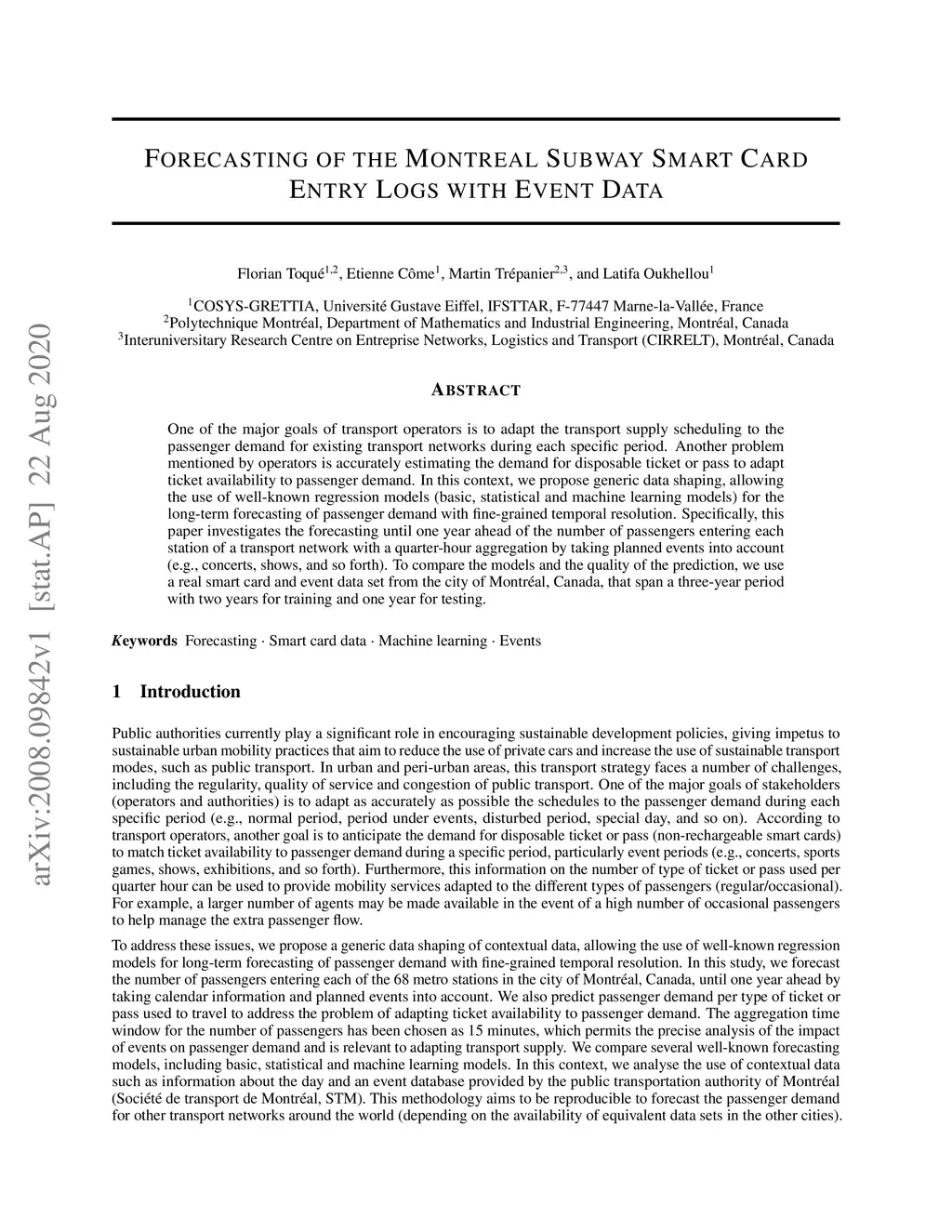 Forecasting of the Montreal Subway Smart Card Entry Logs with Event Data