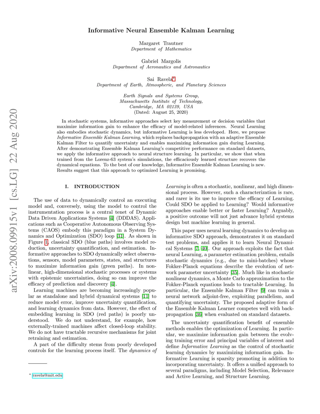 In stochastic systems, informative approaches select key measurement or decision variables that maximize information gain to enhance the efficacy of model-related inferences. Neural Learning also embodies stochastic dynamics, but informative Learning is less developed. Here, we propose Informative Ensemble Kalman Learning, which replaces backpropagation with an adaptive Ensemble Kalman Filter to quantify uncertainty and enables maximizing information gain during Learning. After demonstrating Ensemble Kalman Learning's competitive performance on standard datasets, we apply the informative approach to neural structure learning. In particular, we show that when trained from the Lorenz-63 system's simulations, the efficaciously learned structure recovers the dynamical equations. To the best of our knowledge, Informative Ensemble Kalman Learning is new. Results suggest that this approach to optimized Learning is promising.