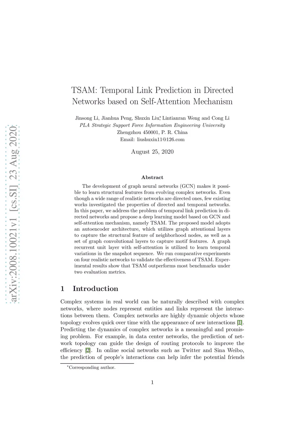 TSAM: Temporal Link Prediction in Directed Networks based on