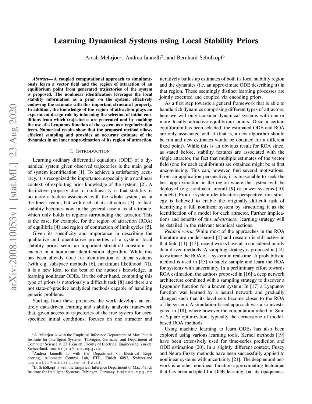 A coupled computational approach to simultaneously learn a vector field and the region of attraction of an equilibrium point from generated trajectories of the system is proposed. The nonlinear identification leverages the local stability information as a prior on the system, effectively endowing the estimate with this important structural property. In addition, the knowledge of the region of attraction plays an experiment design role by informing the selection of initial conditions from which trajectories are generated and by enabling the use of a Lyapunov function of the system as a regularization term. Numerical results show that the proposed method allows efficient sampling and provides an accurate estimate of the dynamics in an inner approximation of its region of attraction.