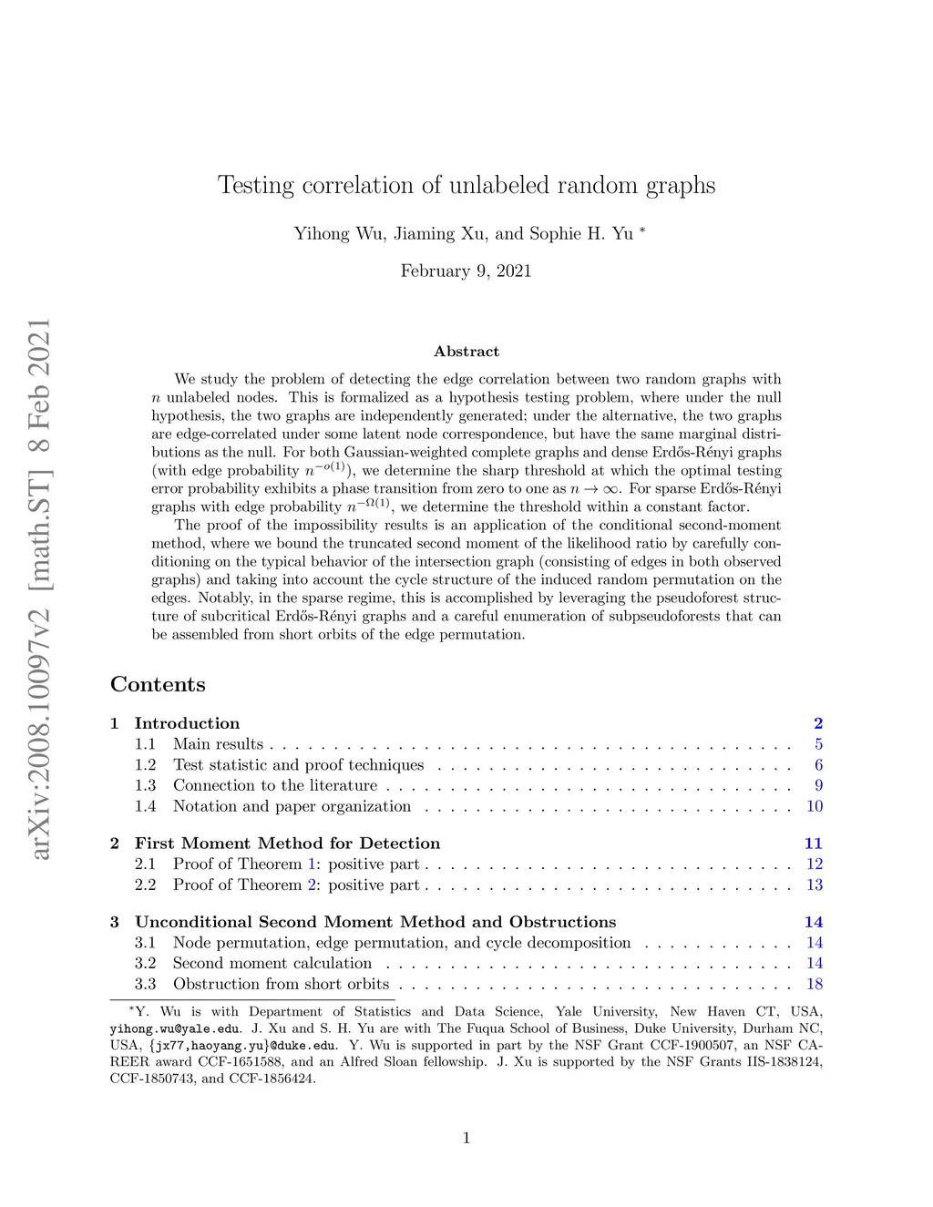 We study the problem of detecting the edge correlation between two random graphs with unlabeled nodes. This is formalized as a hypothesis testing problem, where under the null hypothesis, the two graphs are independently generated; under the alternative, the two graphs are edge-correlated under some latent node correspondence, but have the same marginal distributions as the null. For both Gaussian-weighted complete graphs and dense Erd\H{o}s-R\ényi graphs (with edge probability ), we determine the sharp threshold at which the optimal testing error probability exhibits a phase transition from zero to one as . For sparse Erd\H{o}s-R\ényi graphs with edge probability , we determine the threshold within a constant factor. The proof of the impossibility results is an application of the conditional second-moment method, where we bound the truncated second moment of the likelihood ratio by carefully conditioning on the typical behavior of the intersection graph (consisting of edges in both observed graphs) and taking into account the cycle structure of the induced random permutation on the edges. Notably, in the sparse regime, this is accomplished by leveraging the pseudoforest structure of subcritical Erd\H{o}s-R\ényi graphs and a careful enumeration of subpseudoforests that can be assembled from short orbits of the edge permutation.