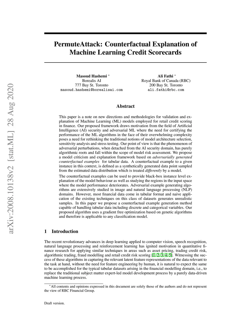 PermuteAttack: Counterfactual Explanation of Machine Learning Credit