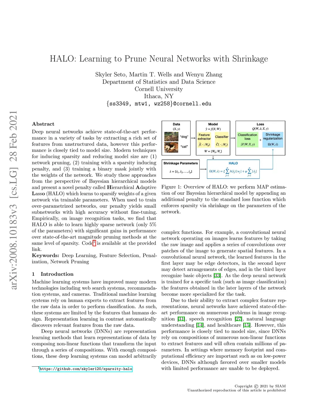 HALO: Learning to Prune Neural Networks with Shrinkage