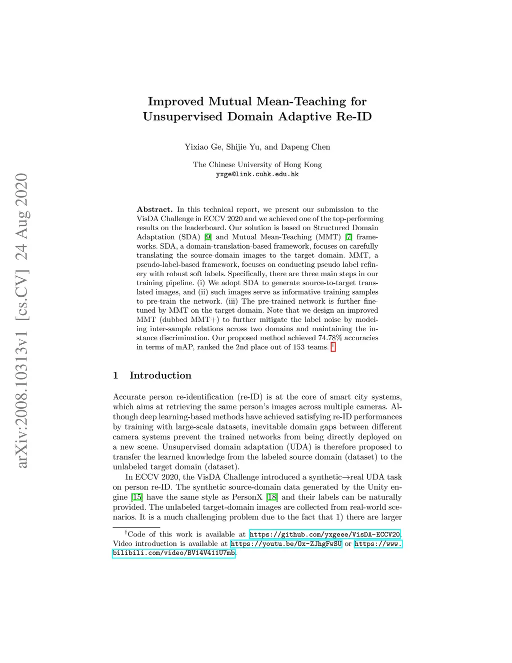 In this technical report, we present our submission to the VisDA Challenge in ECCV 2020 and we achieved one of the top-performing results on the leaderboard. Our solution is based on Structured Domain Adaptation (SDA) and Mutual Mean-Teaching (MMT) frameworks. SDA, a domain-translation-based framework, focuses on carefully translating the source-domain images to the target domain. MMT, a pseudo-label-based framework, focuses on conducting pseudo label refinery with robust soft labels. Specifically, there are three main steps in our training pipeline. (i) We adopt SDA to generate source-to-target translated images, and (ii) such images serve as informative training samples to pre-train the network. (iii) The pre-trained network is further fine-tuned by MMT on the target domain. Note that we design an improved MMT (dubbed MMT+) to further mitigate the label noise by modeling inter-sample relations across two domains and maintaining the instance discrimination. Our proposed method achieved 74.78% accuracies in terms of mAP, ranked the 2nd place out of 153 teams.