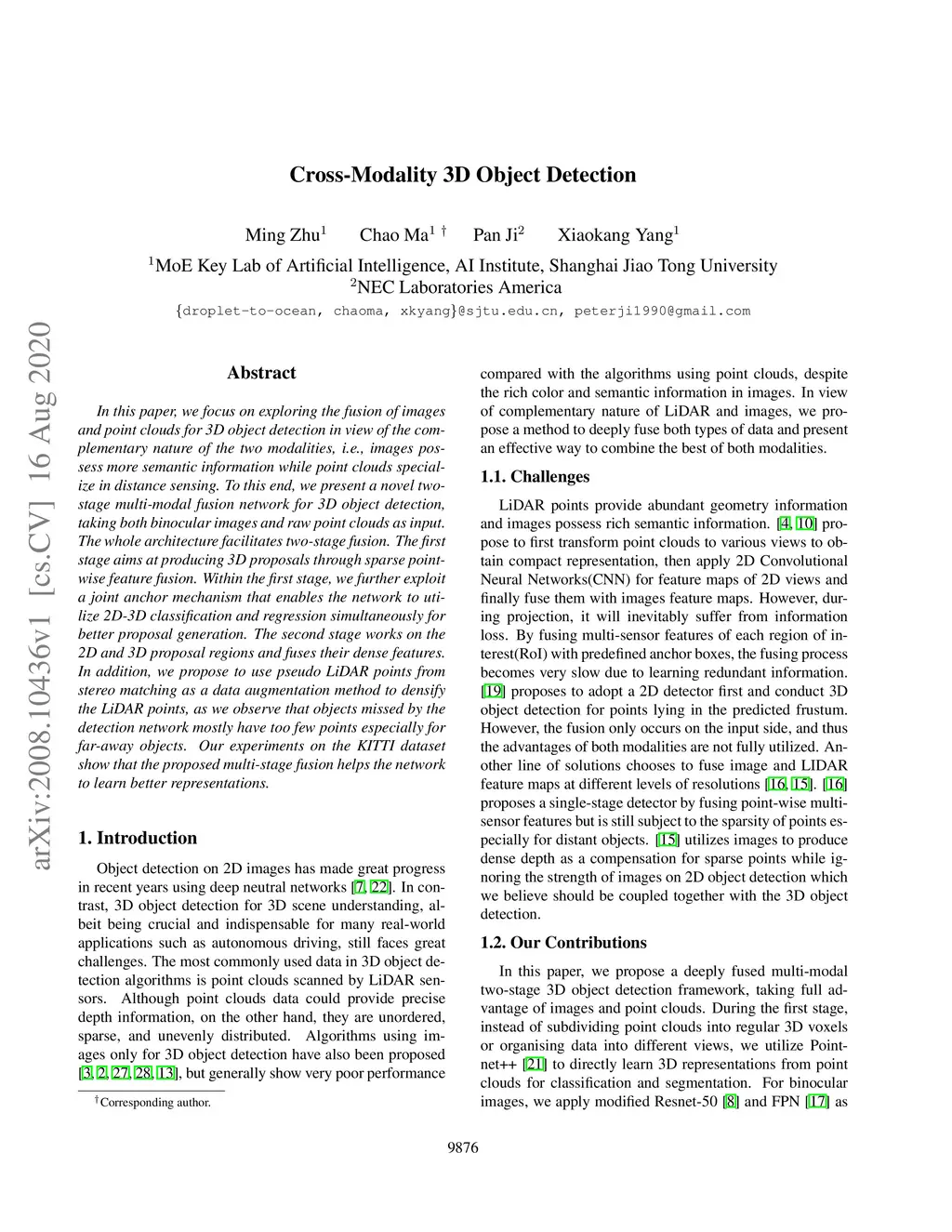 Cross-Modality 3D Object Detection