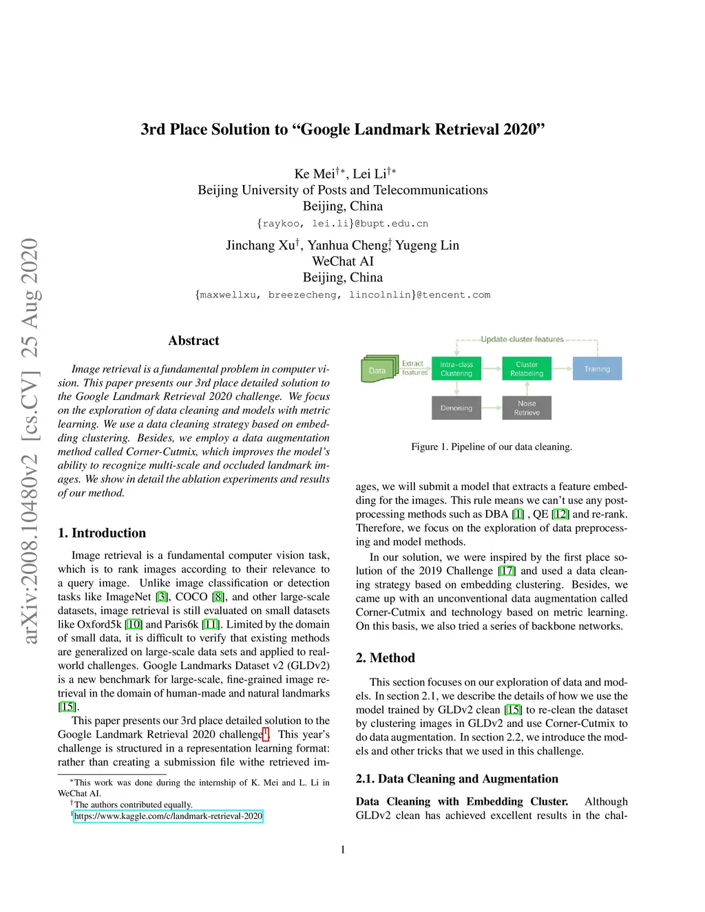 Image retrieval is a fundamental problem in computer vision. This paper presents our 3rd place detailed solution to the Google Landmark Retrieval 2020 challenge. We focus on the exploration of data cleaning and models with metric learning. We use a data cleaning strategy based on embedding clustering. Besides, we employ a data augmentation method called Corner-Cutmix, which improves the model's ability to recognize multi-scale and occluded landmark images. We show in detail the ablation experiments and results of our method.