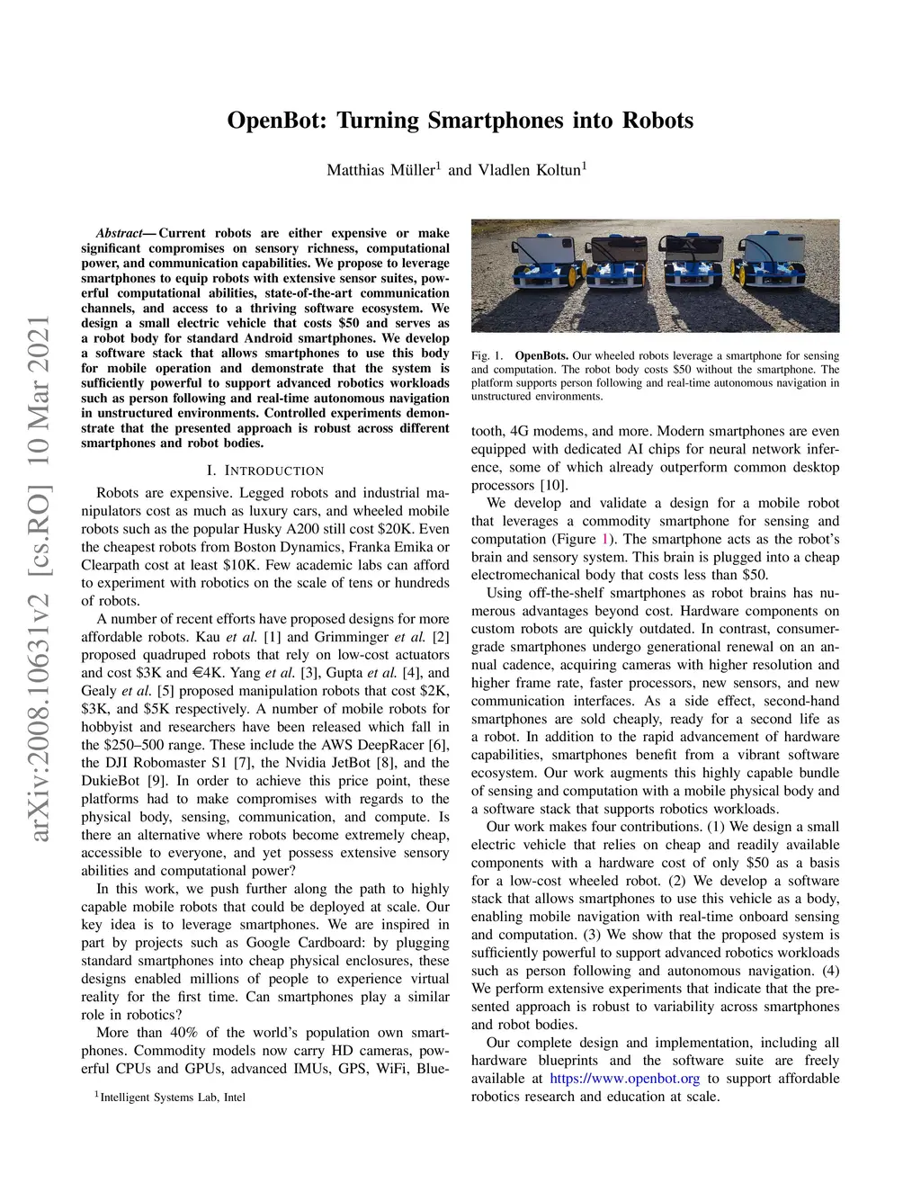 Current robots are either expensive or make significant compromises on sensory richness, computational power, and communication capabilities. We propose to leverage smartphones to equip robots with extensive sensor suites, powerful computational abilities, state-of-the-art communication channels, and access to a thriving software ecosystem. We design a small electric vehicle that costs $50 and serves as a robot body for standard Android smartphones. We develop a software stack that allows smartphones to use this body for mobile operation and demonstrate that the system is sufficiently powerful to support advanced robotics workloads such as person following and real-time autonomous navigation in unstructured environments. Controlled experiments demonstrate that the presented approach is robust across different smartphones and robot bodies. A video of our work is available at https://www.youtube.com/watch?v=qc8hFLyWDOM