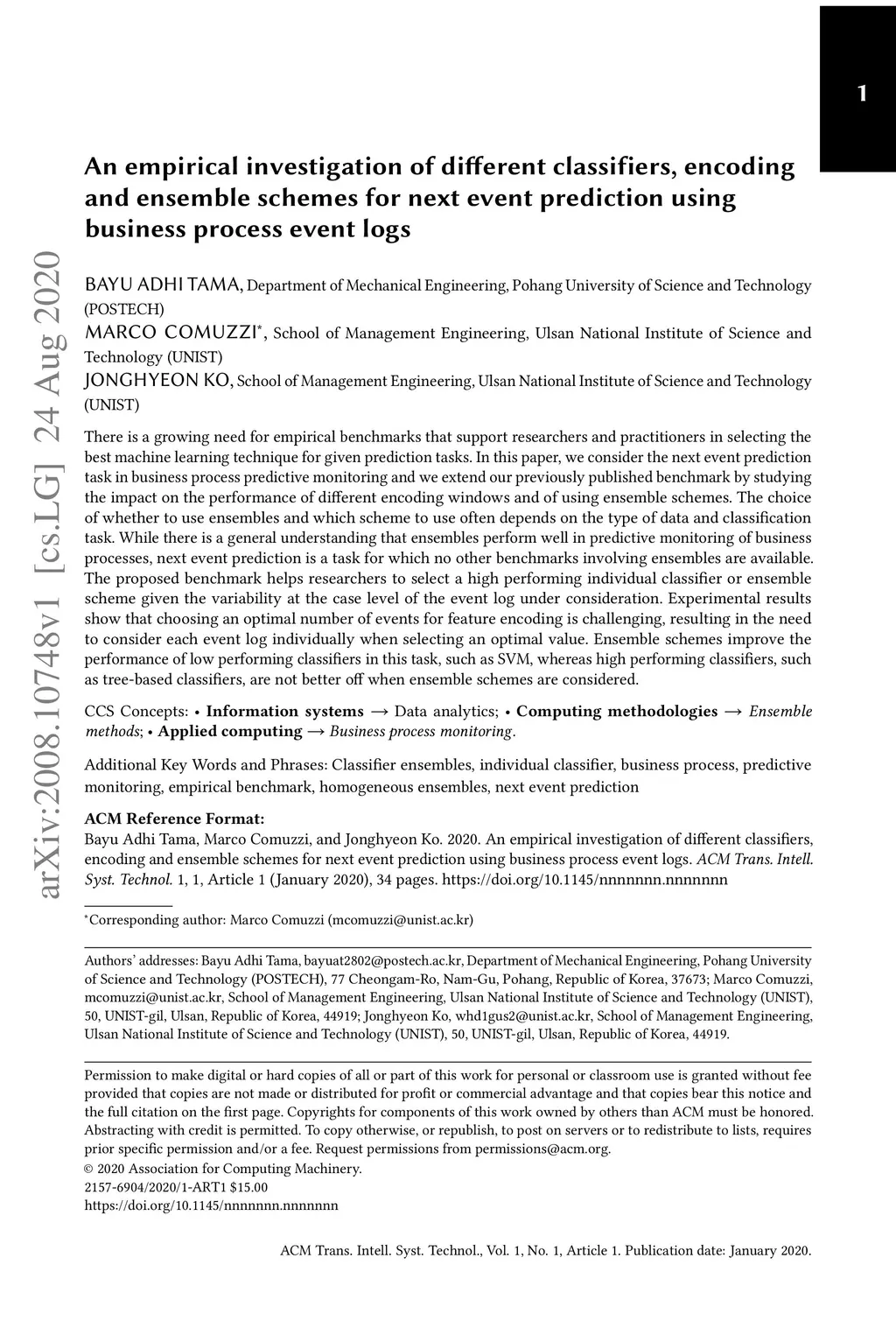 ensemble schemes for next event prediction using business process event logs