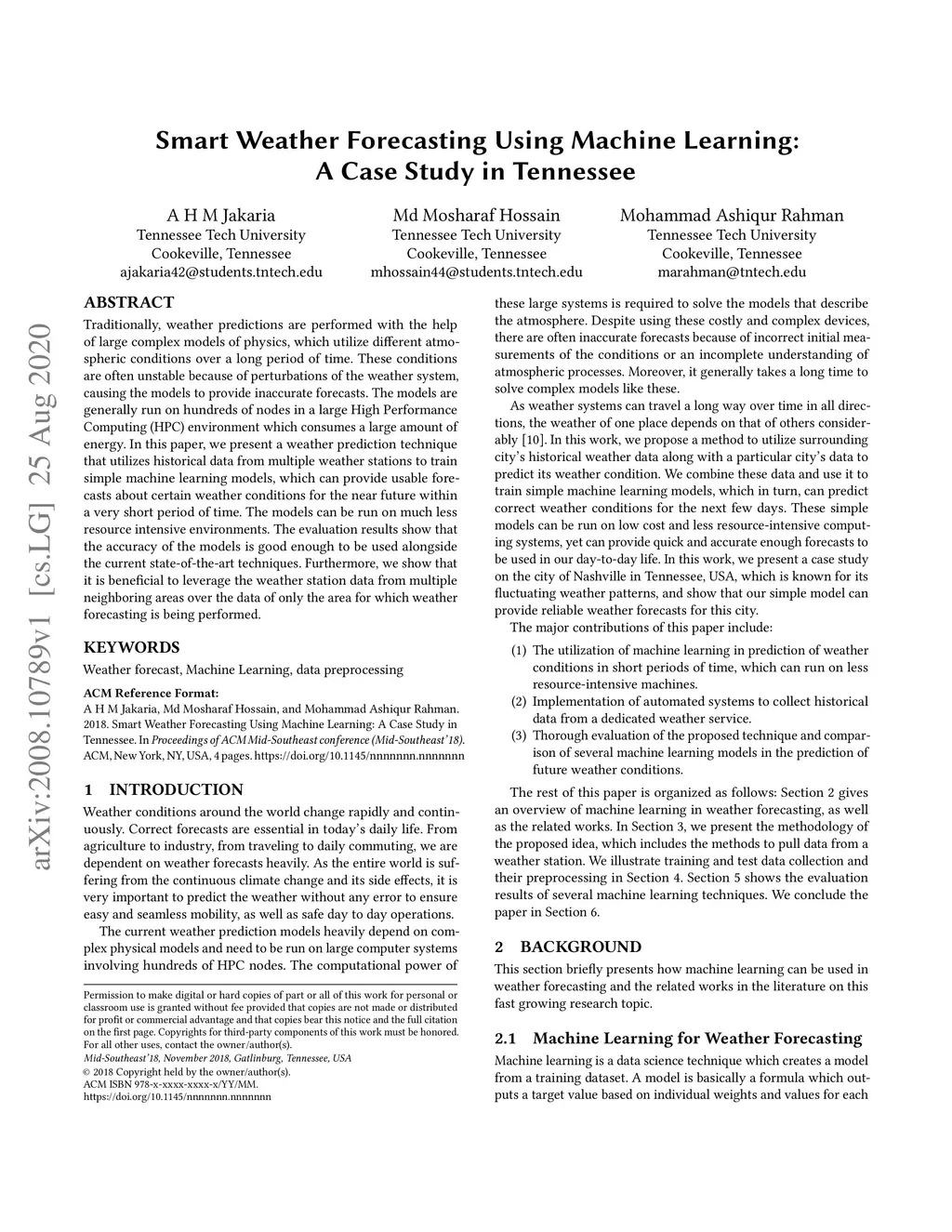 Smart Weather Forecasting Using Machine Learning:A Case Study in