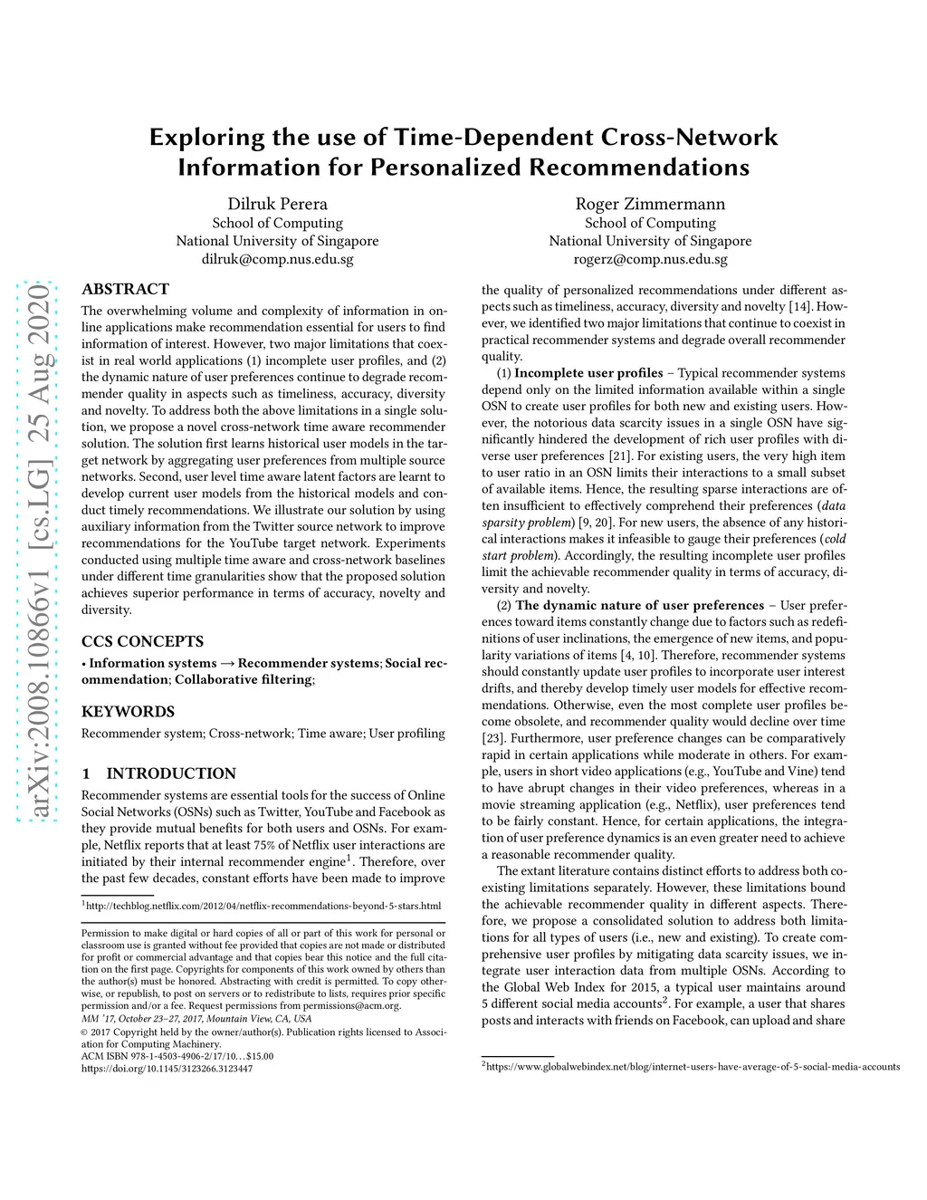 The overwhelming volume and complexity of information in online applications make recommendation essential for users to find information of interest. However, two major limitations that coexist in real world applications (1) incomplete user profiles, and (2) the dynamic nature of user preferences continue to degrade recommender quality in aspects such as timeliness, accuracy, diversity and novelty. To address both the above limitations in a single solution, we propose a novel cross-network time aware recommender solution. The solution first learns historical user models in the target network by aggregating user preferences from multiple source networks. Second, user level time aware latent factors are learnt to develop current user models from the historical models and conduct timely recommendations. We illustrate our solution by using auxiliary information from the Twitter source network to improve recommendations for the YouTube target network. Experiments conducted using multiple time aware and cross-network baselines under different time granularities show that the proposed solution achieves superior performance in terms of accuracy, novelty and diversity.