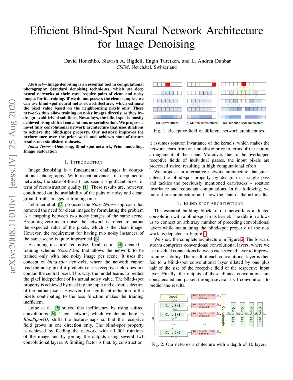 Efficient Blind-Spot Neural Network Architecture for Image Denoising