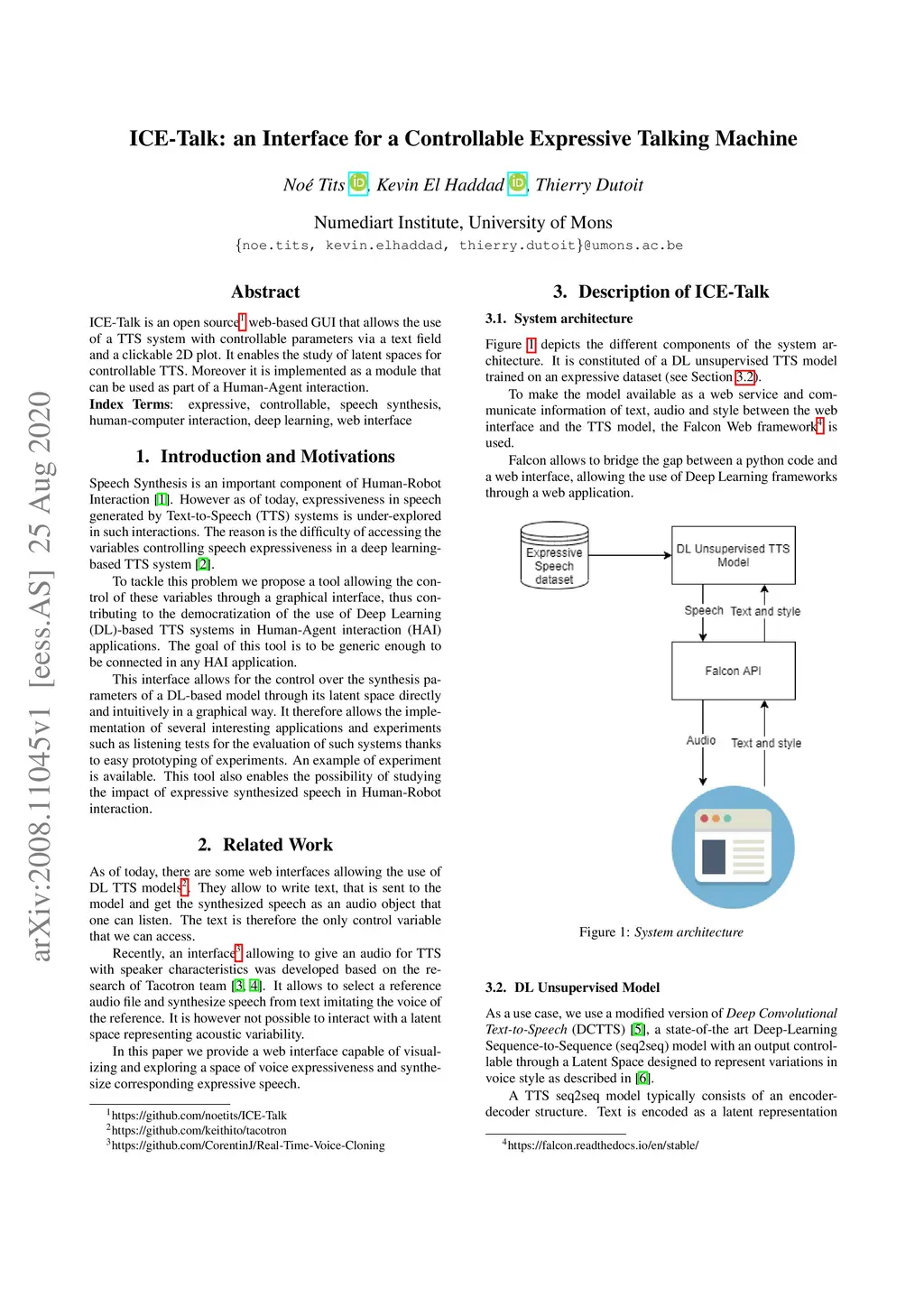 ICE-Talk is an open source web-based GUI that allows the use of a TTS system with controllable parameters via a text field and a clickable 2D plot. It enables the study of latent spaces for controllable TTS. Moreover it is implemented as a module that can be used as part of a Human-Agent interaction.