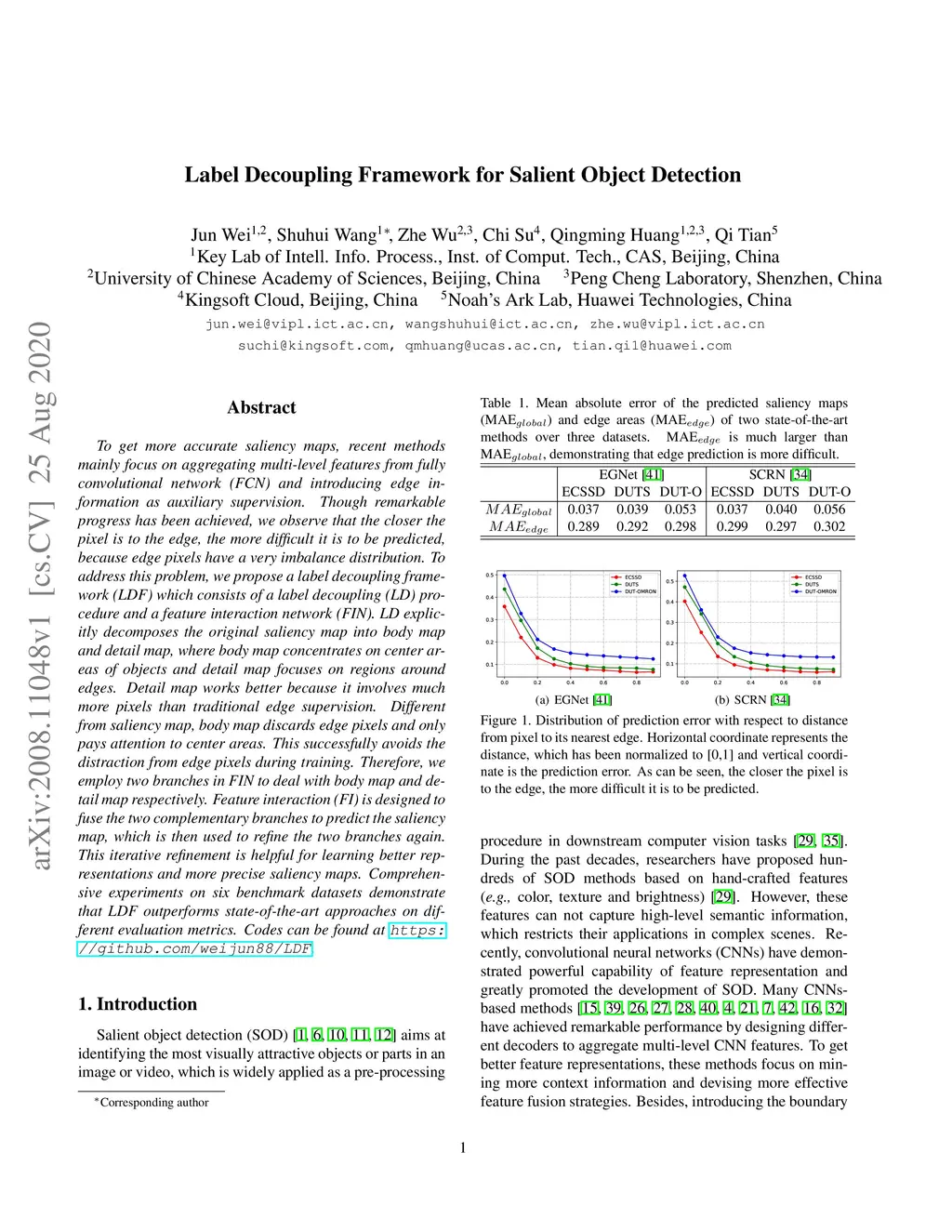 To get more accurate saliency maps, recent methods mainly focus on aggregating multi-level features from fully convolutional network (FCN) and introducing edge information as auxiliary supervision. Though remarkable progress has been achieved, we observe that the closer the pixel is to the edge, the more difficult it is to be predicted, because edge pixels have a very imbalance distribution. To address this problem, we propose a label decoupling framework (LDF) which consists of a label decoupling (LD) procedure and a feature interaction network (FIN). LD explicitly decomposes the original saliency map into body map and detail map, where body map concentrates on center areas of objects and detail map focuses on regions around edges. Detail map works better because it involves much more pixels than traditional edge supervision. Different from saliency map, body map discards edge pixels and only pays attention to center areas. This successfully avoids the distraction from edge pixels during training. Therefore, we employ two branches in FIN to deal with body map and detail map respectively. Feature interaction (FI) is designed to fuse the two complementary branches to predict the saliency map, which is then used to refine the two branches again. This iterative refinement is helpful for learning better representations and more precise saliency maps. Comprehensive experiments on six benchmark datasets demonstrate that LDF outperforms state-of-the-art approaches on different evaluation metrics.