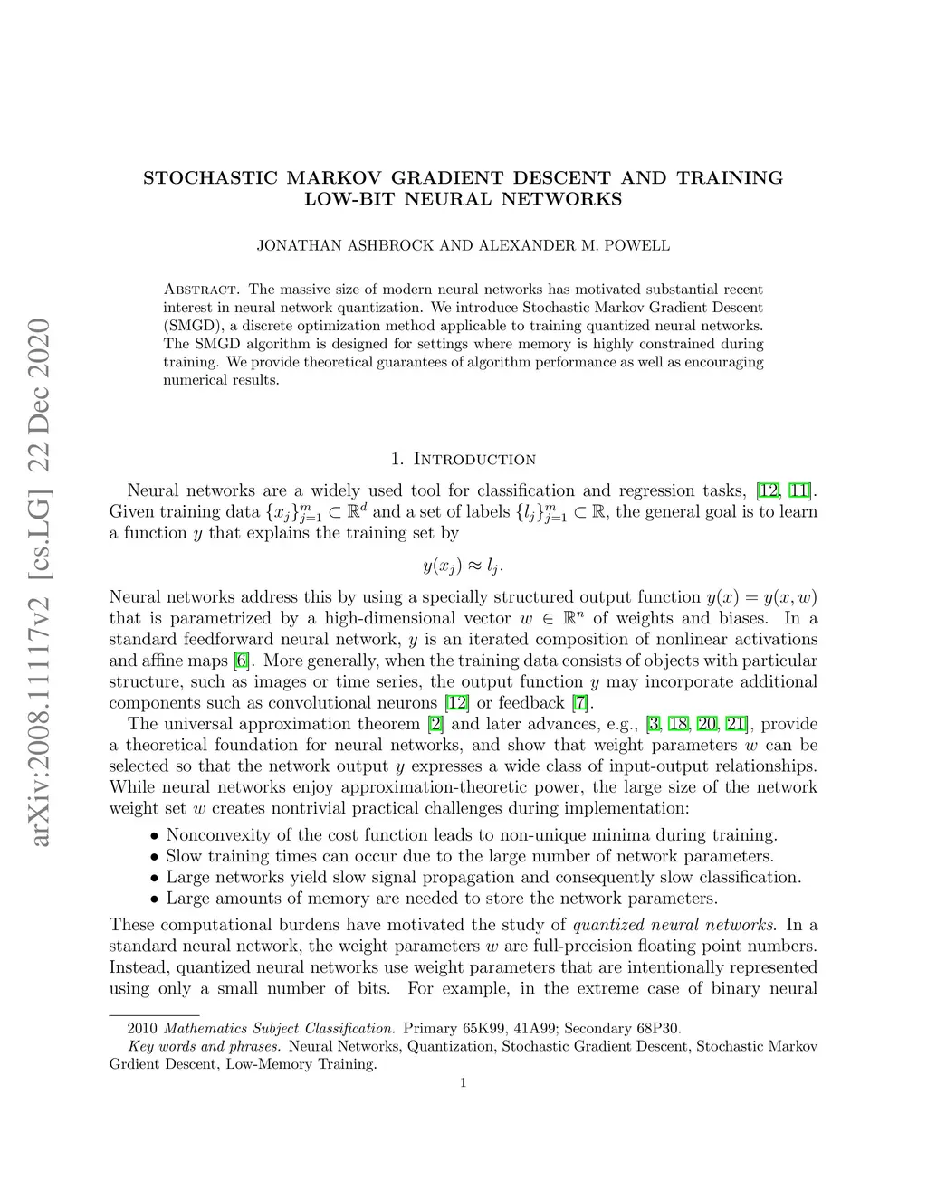 Stochastic Markov Gradient Descent and Training Low-Bit Neural Networks