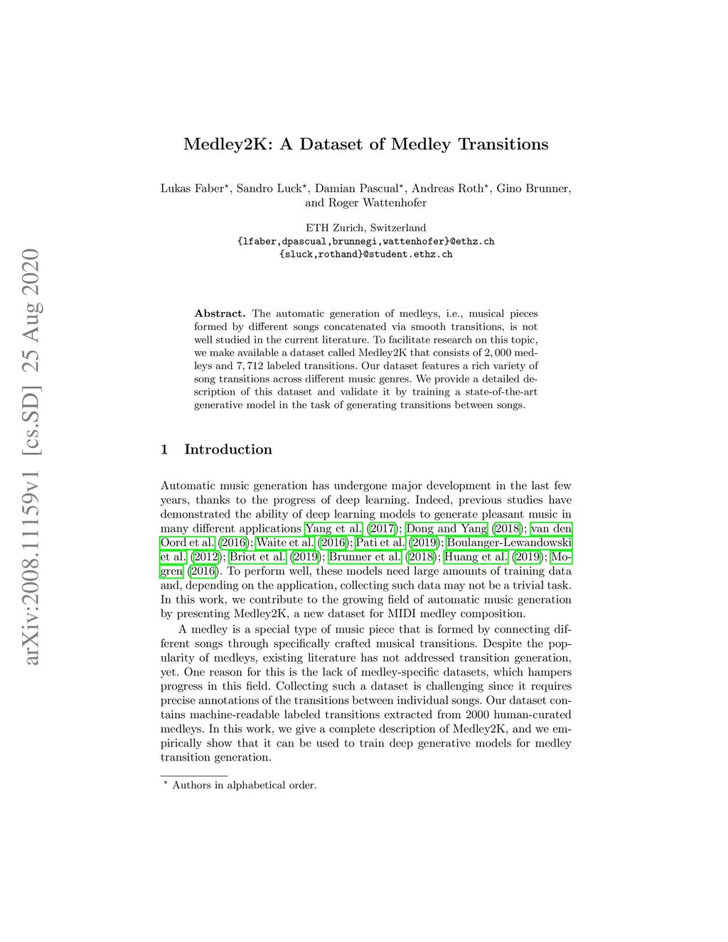 The automatic generation of medleys, i.e., musical pieces formed by different songs concatenated via smooth transitions, is not well studied in the current literature. To facilitate research on this topic, we make available a dataset called Medley2K that consists of 2,000 medleys and 7,712 labeled transitions. Our dataset features a rich variety of song transitions across different music genres. We provide a detailed description of this dataset and validate it by training a state-of-the-art generative model in the task of generating transitions between songs.