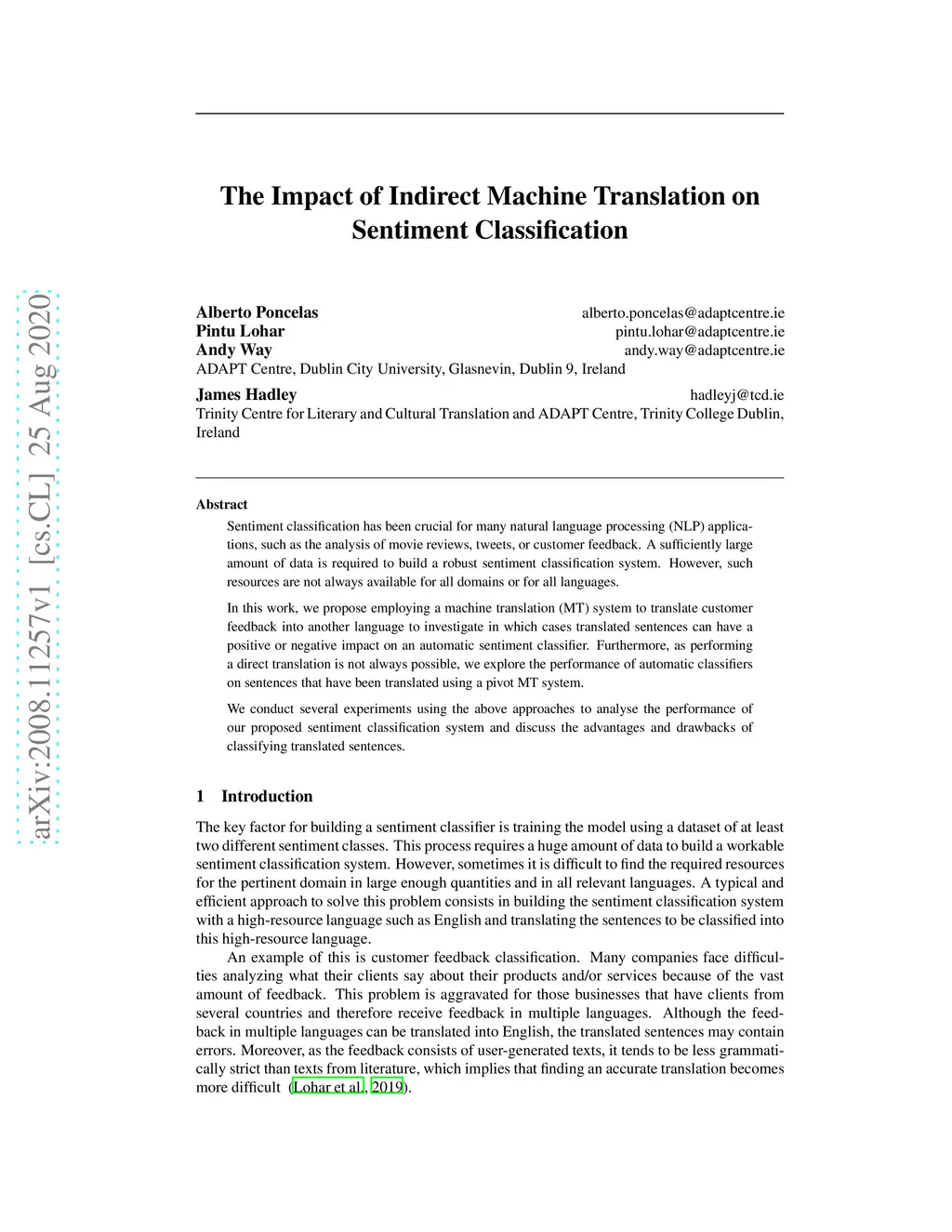 The Impact of Indirect Machine Translation on Sentiment Classification
