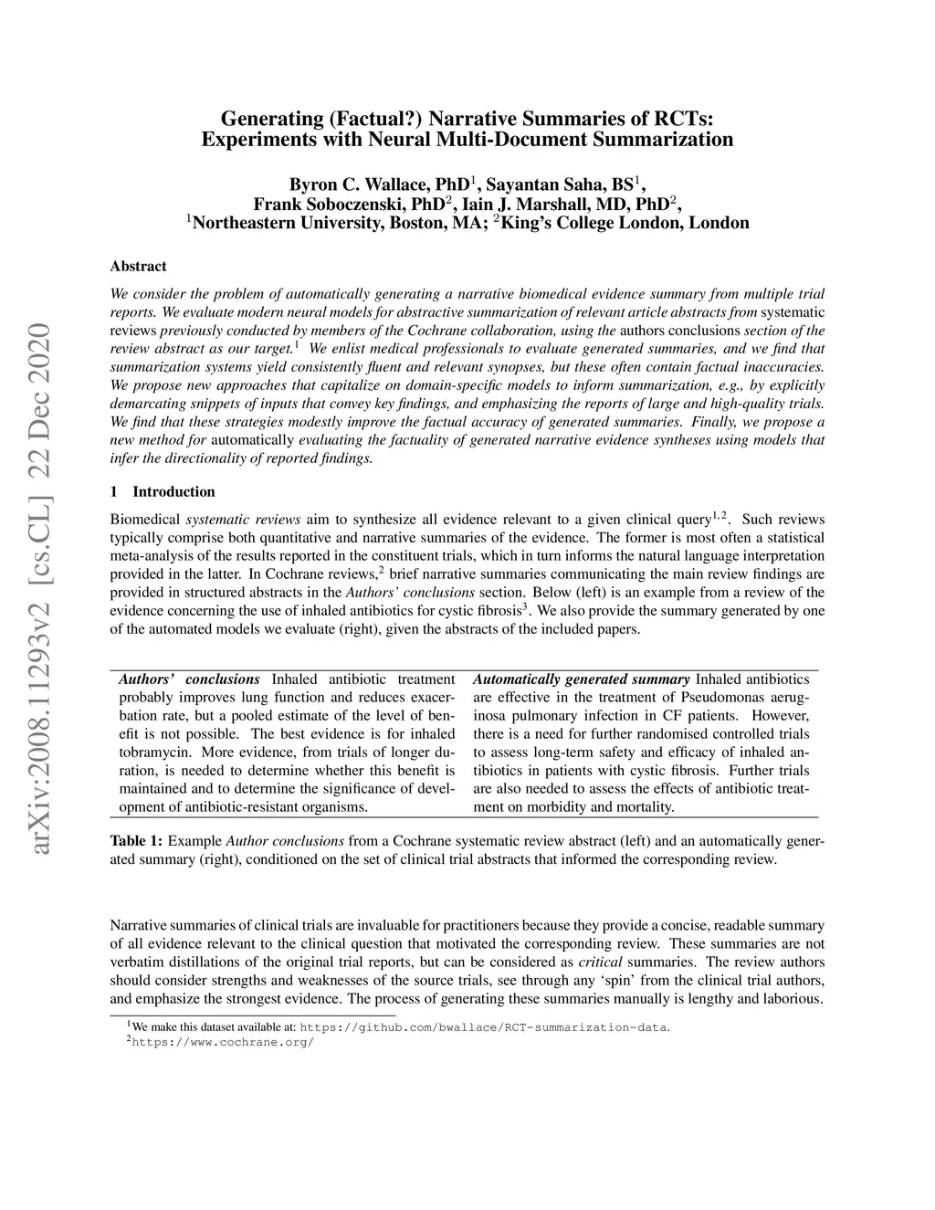Generating (Factual?) Narrative Summaries of RCTs: Experiments with