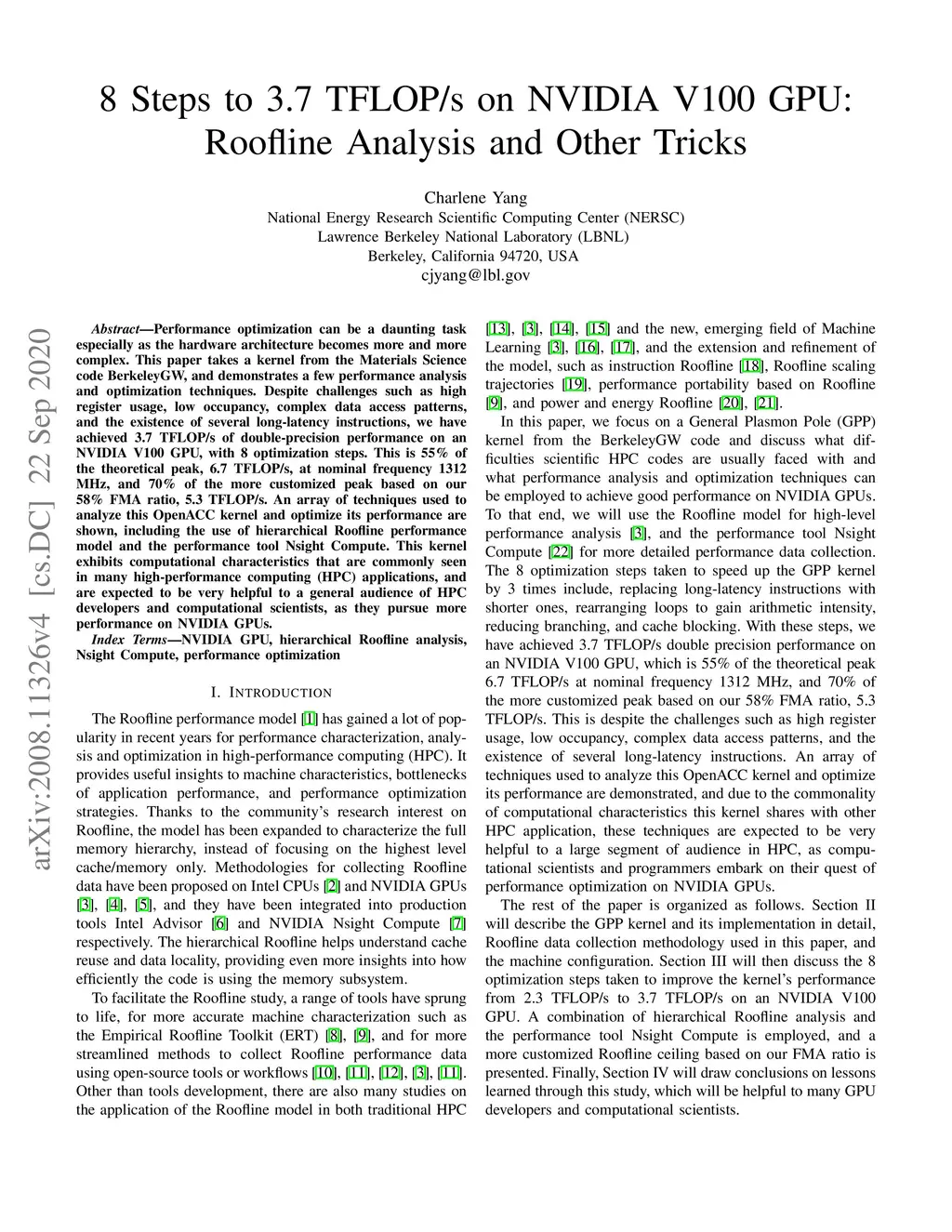 8 Steps to 3.7 TFLOP/s on NVIDIA V100 GPU: Roofline Analysis and Other