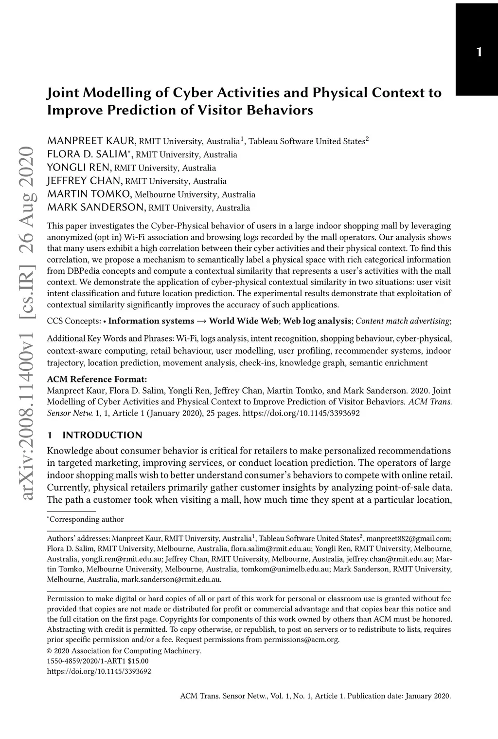 This paper investigates the Cyber-Physical behavior of users in a large indoor shopping mall by leveraging anonymized (opt in) Wi-Fi association and browsing logs recorded by the mall operators. Our analysis shows that many users exhibit a high correlation between their cyber activities and their physical context. To find this correlation, we propose a mechanism to semantically label a physical space with rich categorical information from DBPedia concepts and compute a contextual similarity that represents a user's activities with the mall context. We demonstrate the application of cyber-physical contextual similarity in two situations: user visit intent classification and future location prediction. The experimental results demonstrate that exploitation of contextual similarity significantly improves the accuracy of such applications.