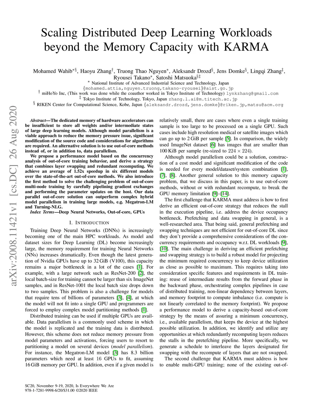Scaling Distributed Deep Learning Workloads beyond the Memory Capacity