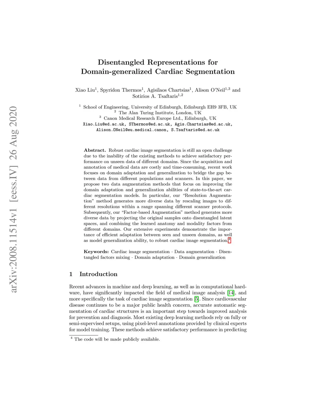 Disentangled Representations for Domain-generalized Cardiac Segmentation
