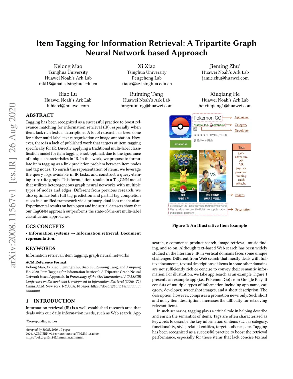 Item Tagging for Information Retrieval: A Tripartite Graph Neural