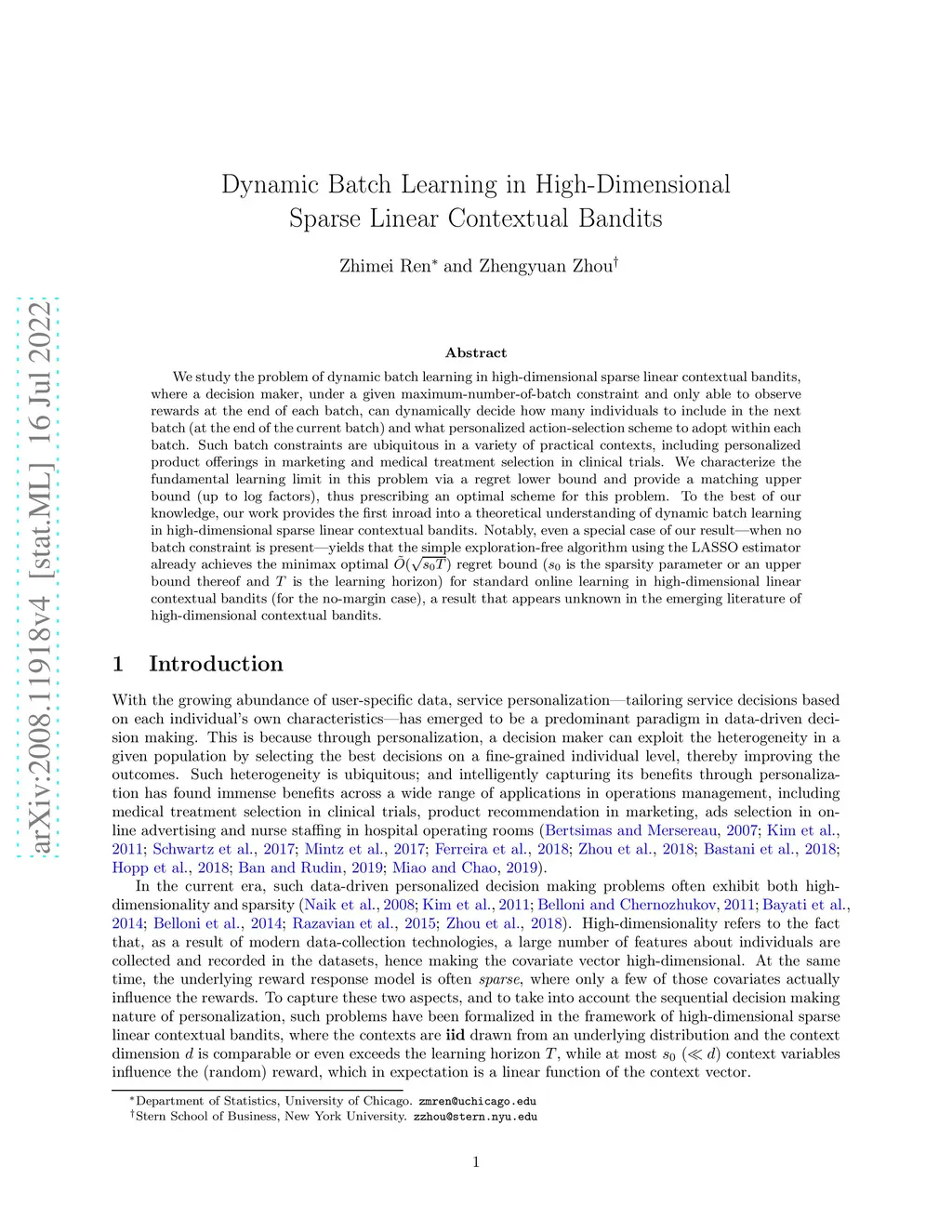Dynamic Batch Learning in High-Dimensional Sparse Linear Contextual