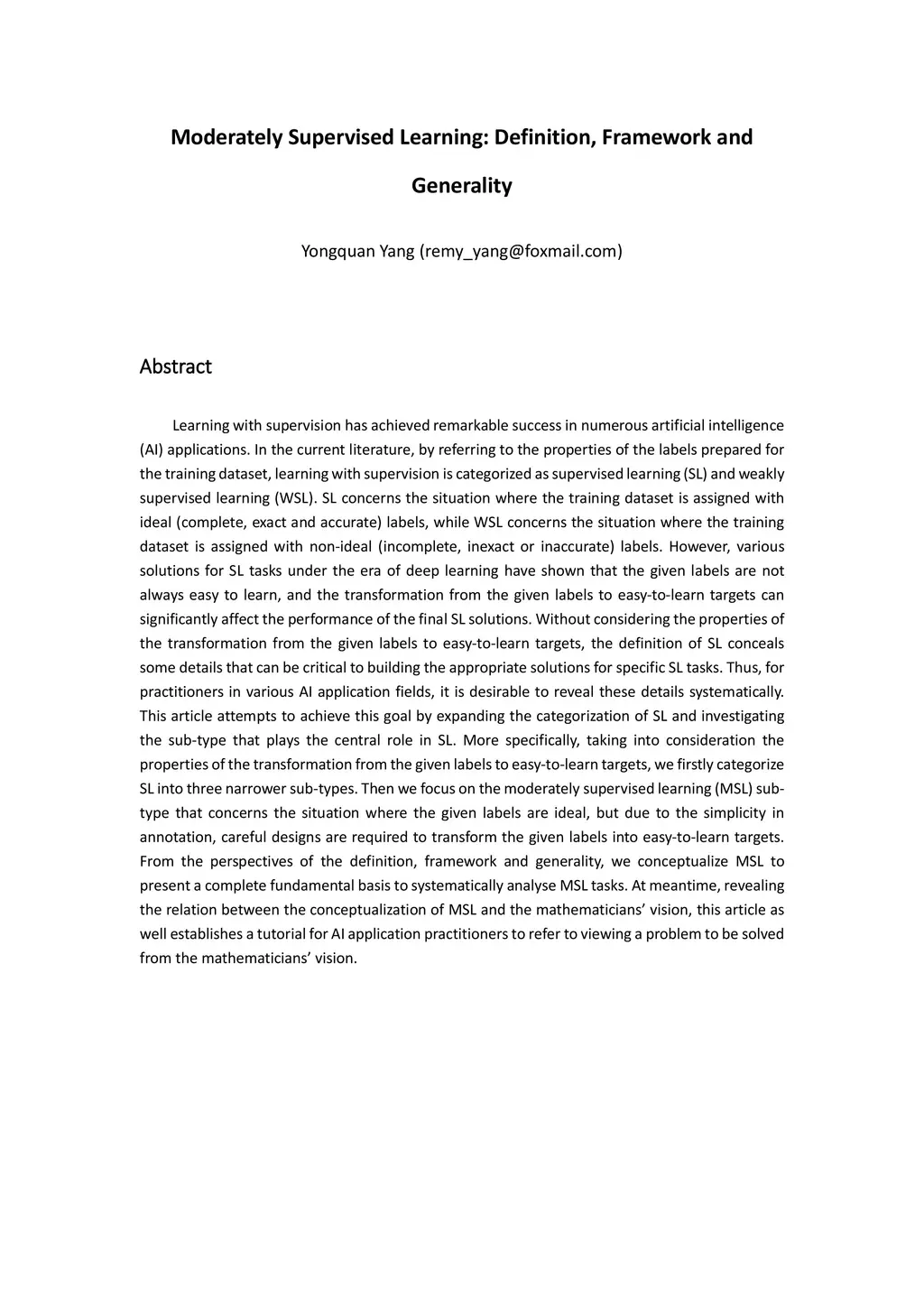 Moderately Supervised Learning: Definition, Framework and Generality