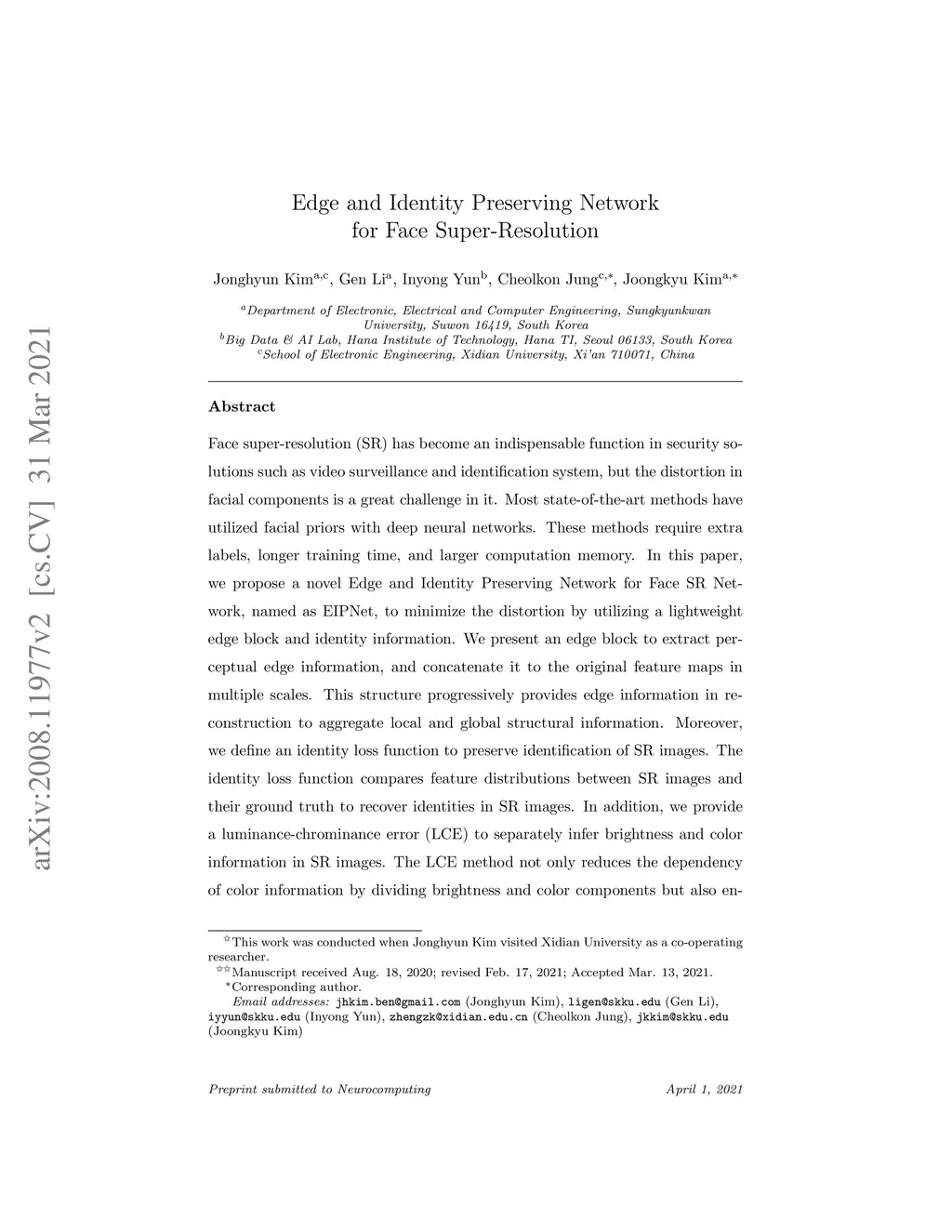 Edge and Identity Preserving Network for Face Super-Resolution