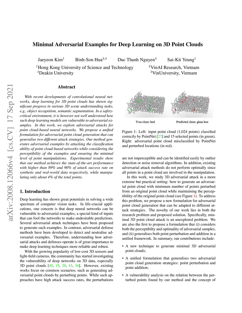 Minimal Adversarial Examples for Deep Learning on 3D Point Clouds