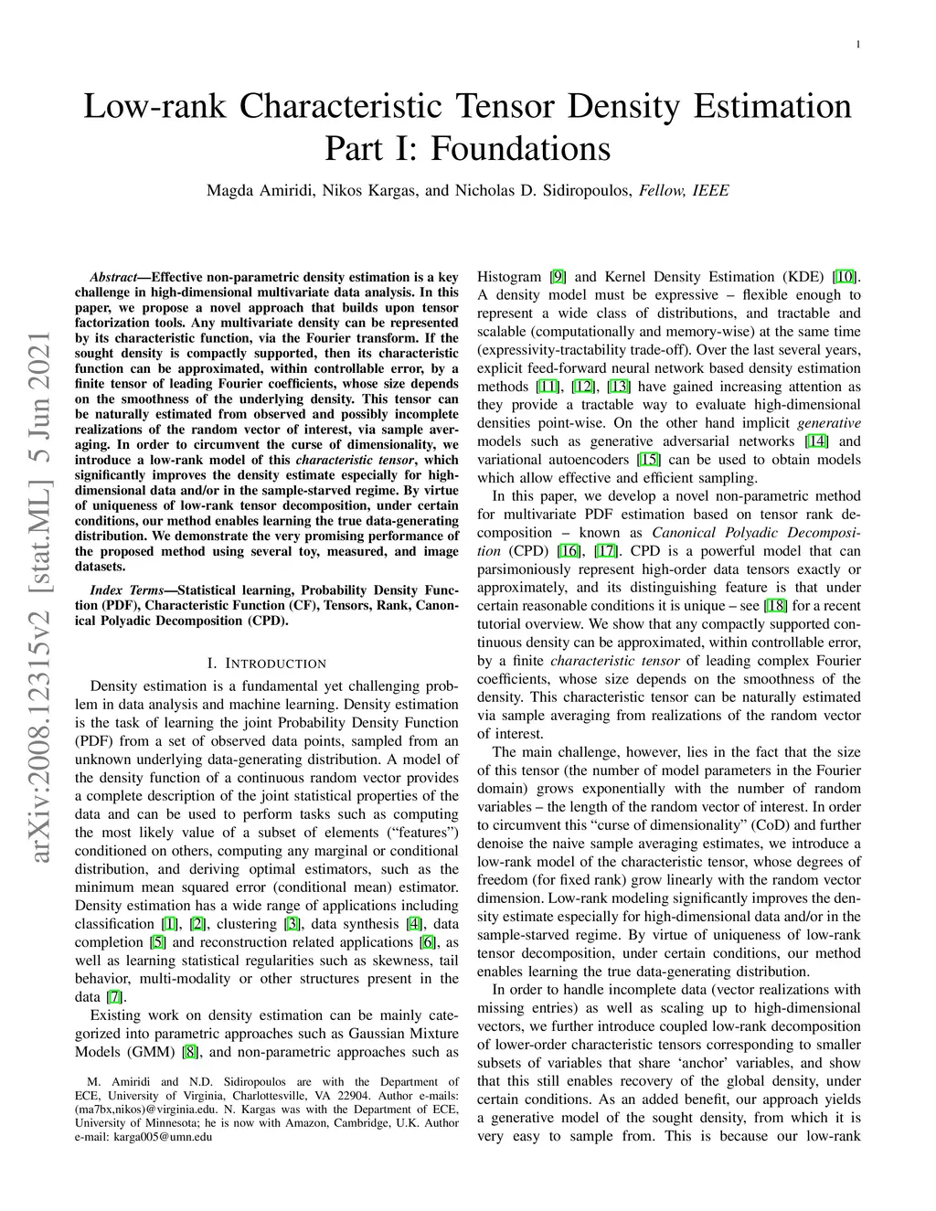 Low-rank Characteristic Tensor Density Estimation Part I: Foundations