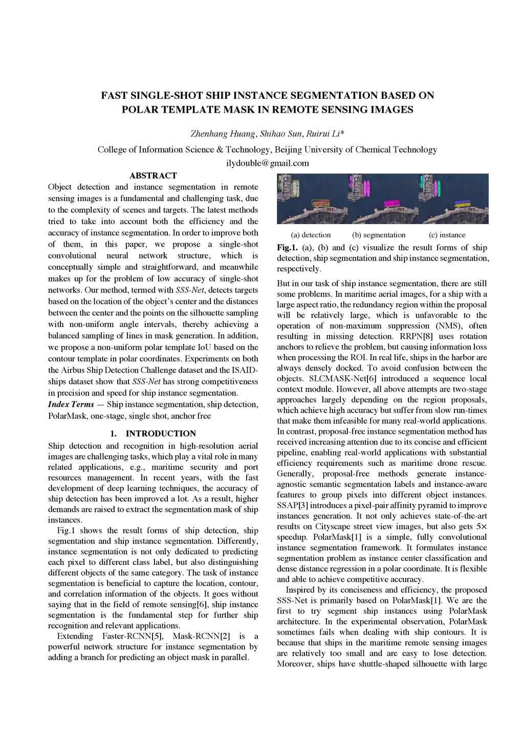 Fast Single-shot Ship Instance Segmentation Based on Polar Template Mask