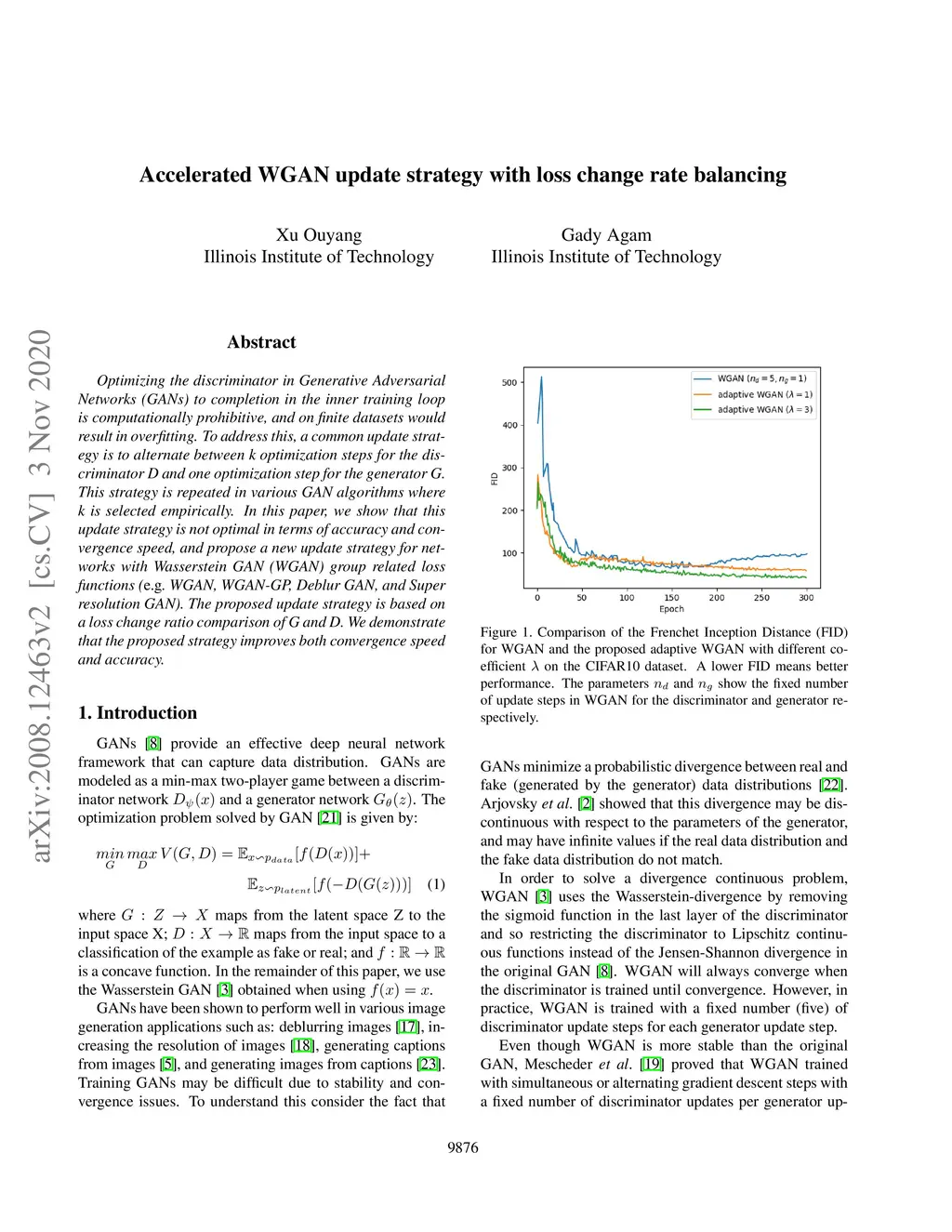 Accelerated WGAN update strategy with loss change rate balancing