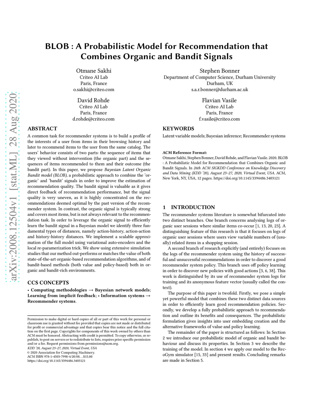 BLOB : A Probabilistic Model for Recommendation that Combines Organic
