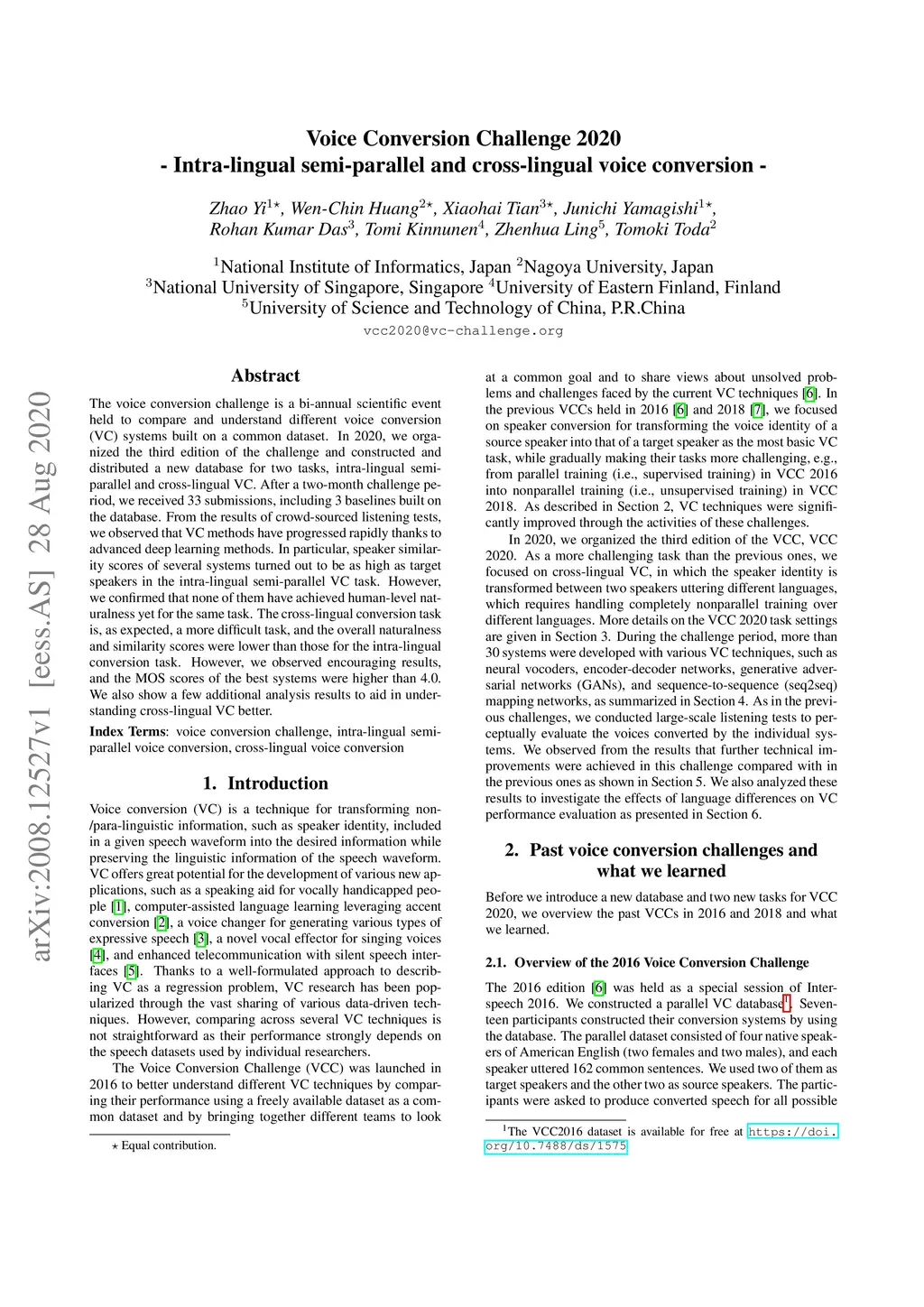 Voice Conversion Challenge 2020: Intra-lingual semi-parallel and
