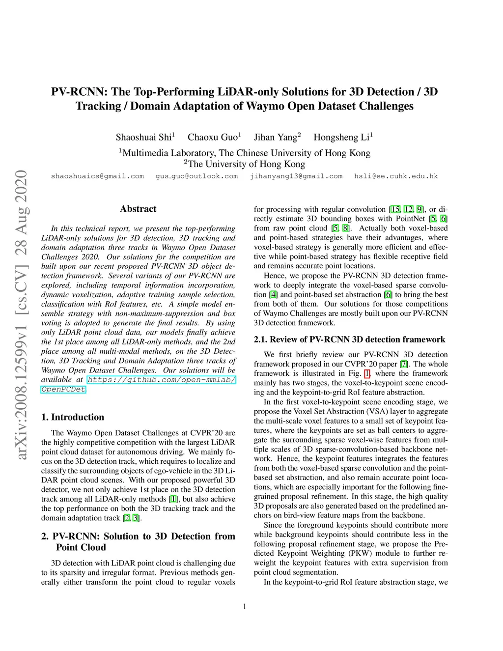 PV-RCNN: The Top-Performing LiDAR-only Solutions for 3D Detection / 3D