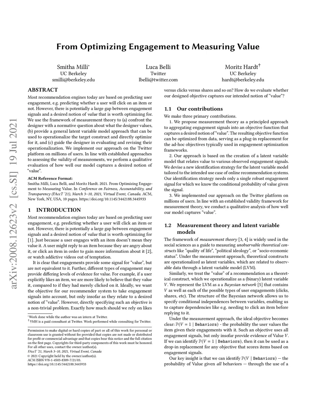 From Optimizing Engagement to Measuring Value