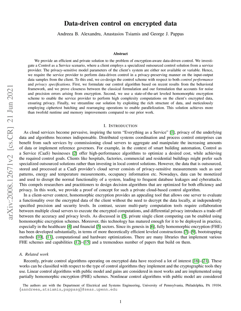 We provide an efficient and private solution to the problem of encryption-aware data-driven control. We investigate a Control as a Service scenario, where a client employs a specialized outsourced control solution from a service provider. The privacy-sensitive model parameters of the client's system are either not available or variable. Hence, we require the service provider to perform data-driven control in a privacy-preserving manner on the input-output data samples from the client. To this end, we co-design the control scheme with respect to both control performance and privacy specifications. First, we formulate our control algorithm based on recent results from the behavioral framework, and we prove closeness between the classical formulation and our formulation that accounts for noise and precision errors arising from encryption. Second, we use a state-of-the-art leveled homomorphic encryption scheme to enable the service provider to perform high complexity computations on the client's encrypted data, ensuring privacy. Finally, we streamline our solution by exploiting the rich structure of data, and meticulously employing ciphertext batching and rearranging operations to enable parallelization. This solution achieves more than twofold runtime and memory improvements compared to our prior work.
